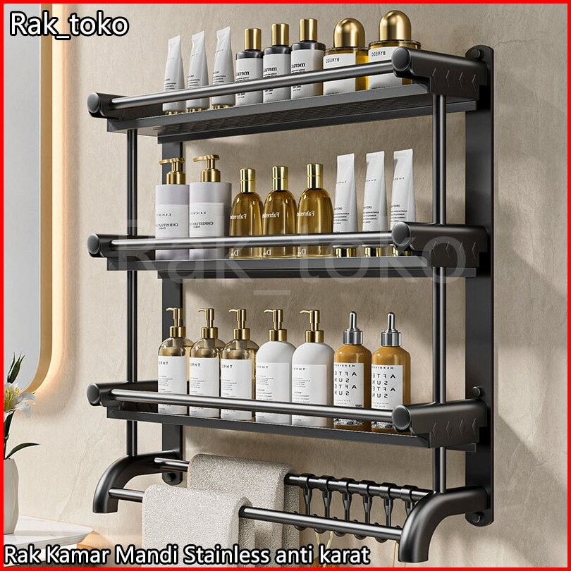 Rak Kamar Mandi Stainless Anti Karat Rak Sabun Kamar Mandi Hitamdinding Gantungan Handuk Kamar Mandi