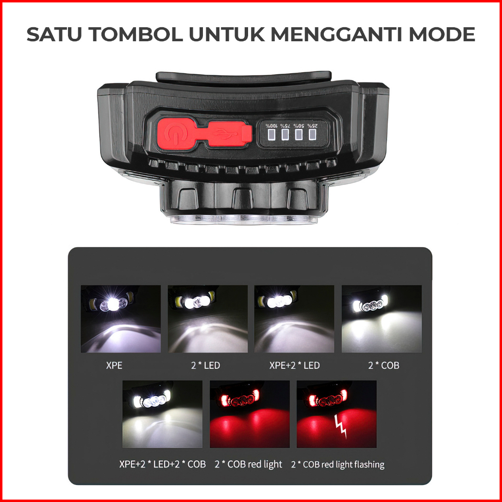 Suksestech Senter Cas Kepala Headlamp 7 Mode 1200mah Super Terang Anti Air Senter Led Hx-810
