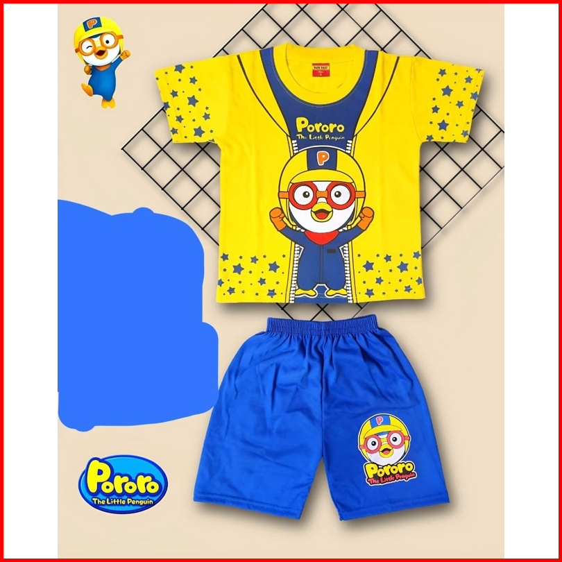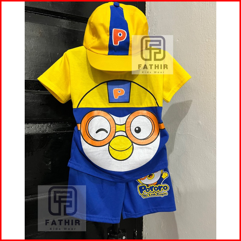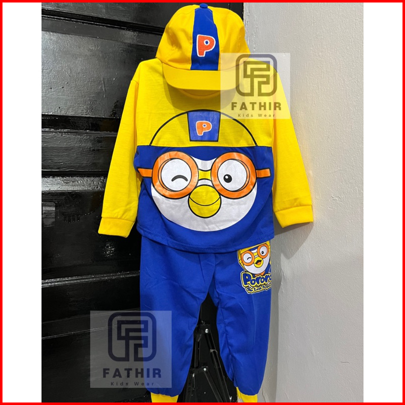 Setelan Baju Anak Pororo Kostum Kuning Dan Topi Pororo Lucu Anak Usia 1-10 Tahun Ready