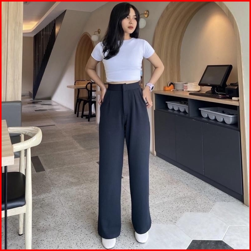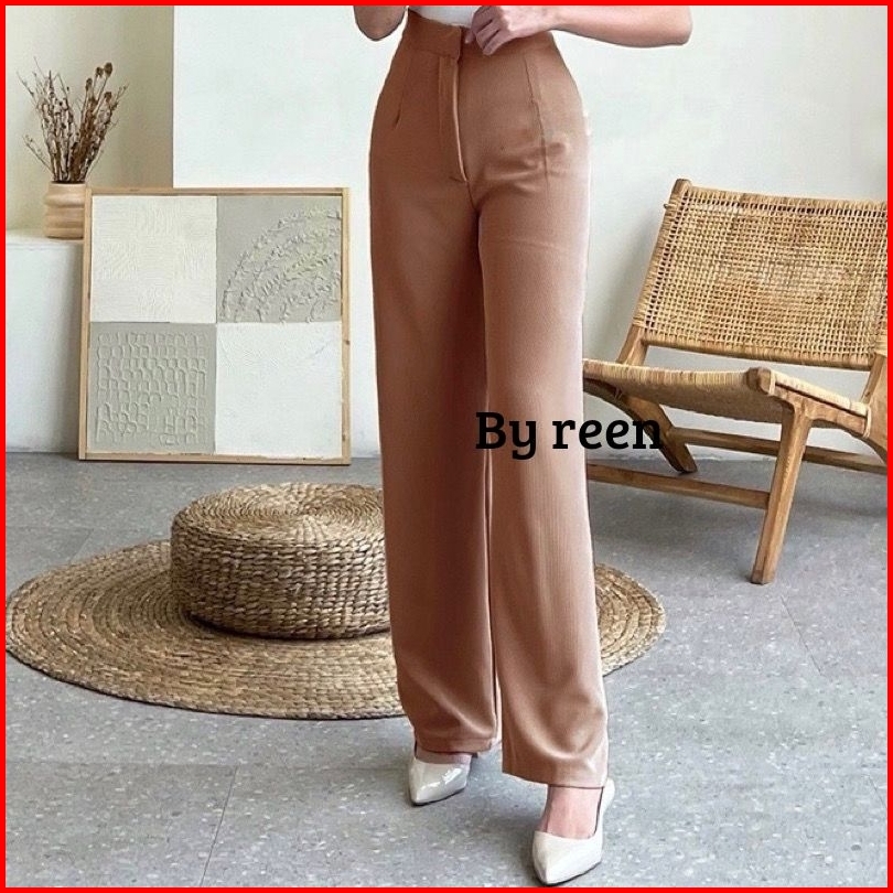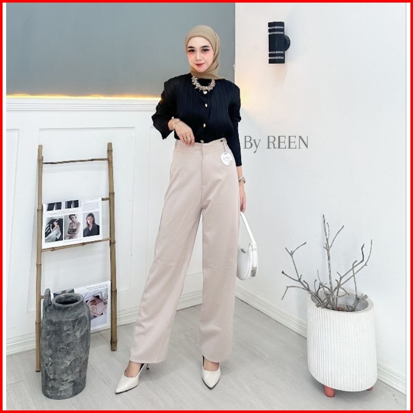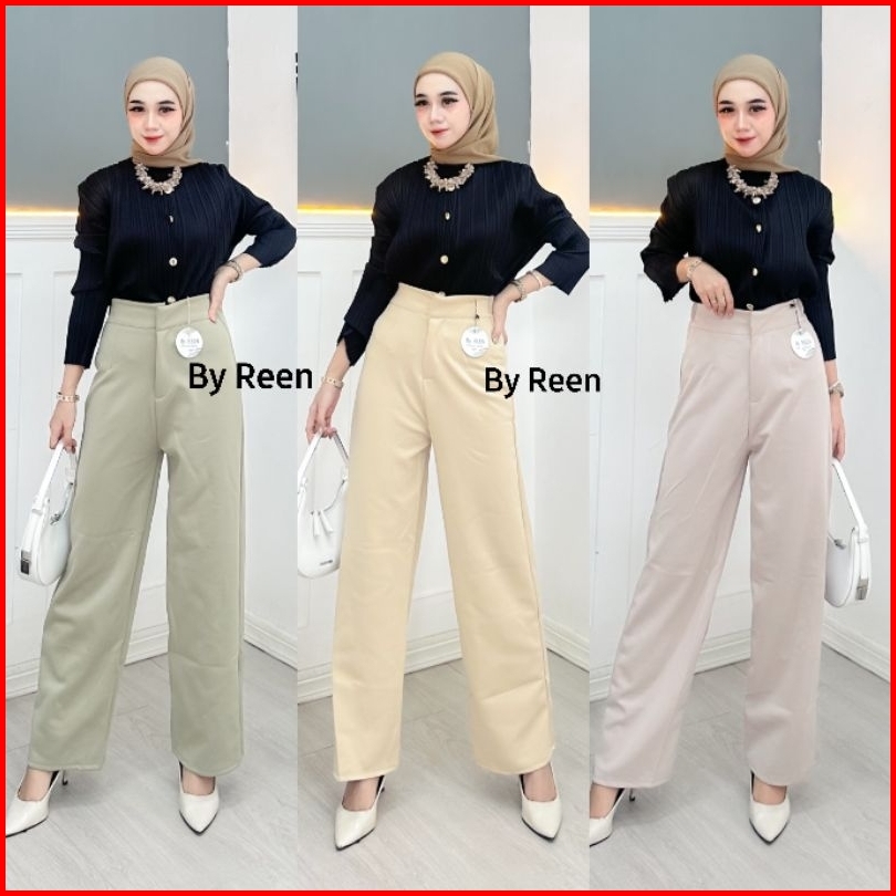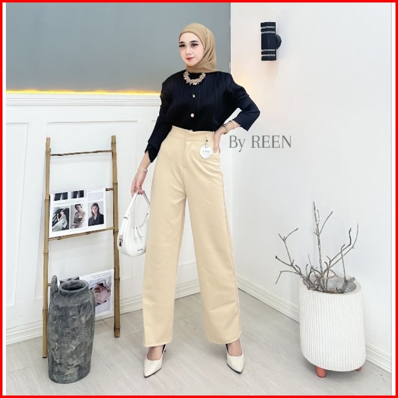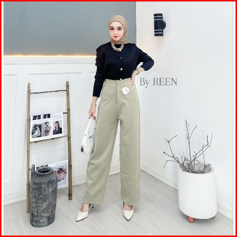 Celana Haigwaist Long Kulot Scuba By Reen High Waist Loose Kulot By Reen