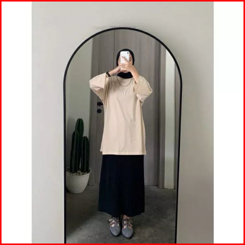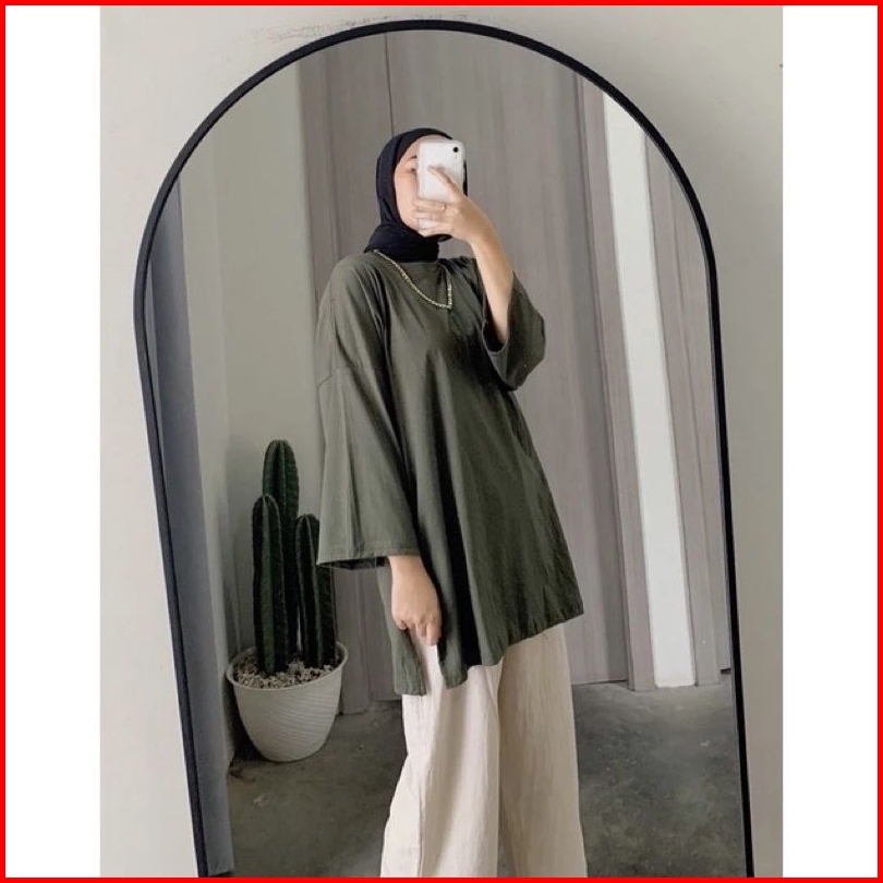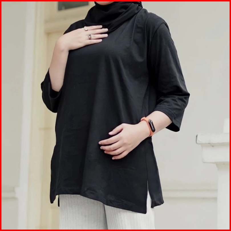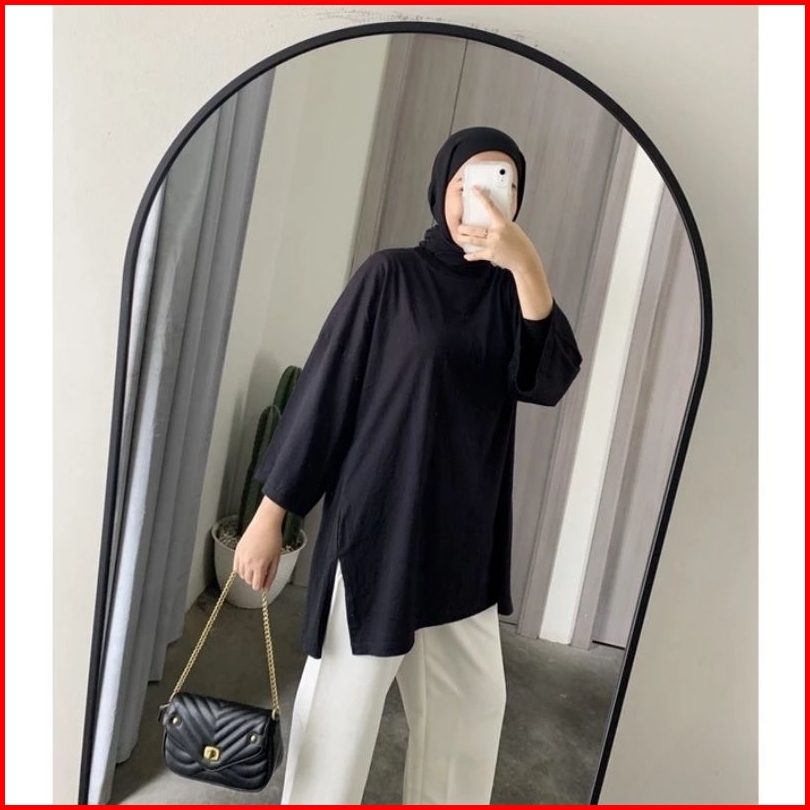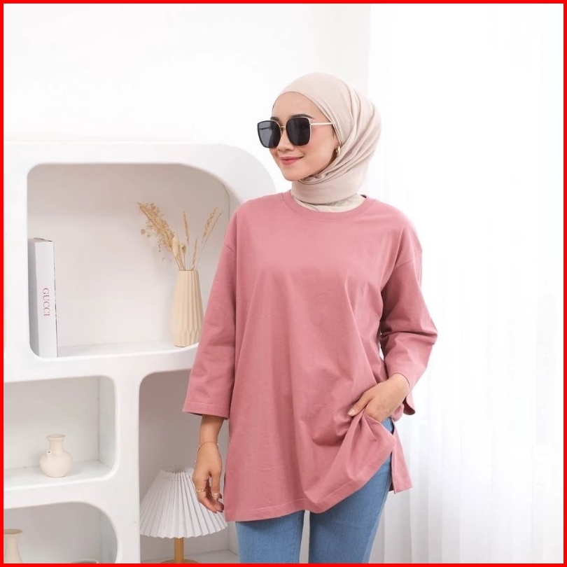 Kaos Oversized Slit Daily Top Jumbo Ld130 Basic Polos Lengan 7 8 Cotton Combed 30s