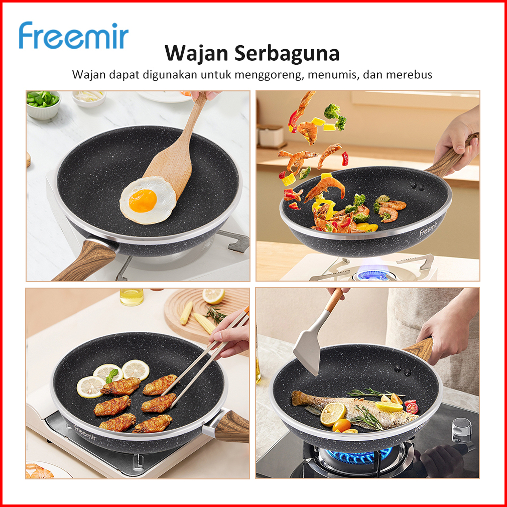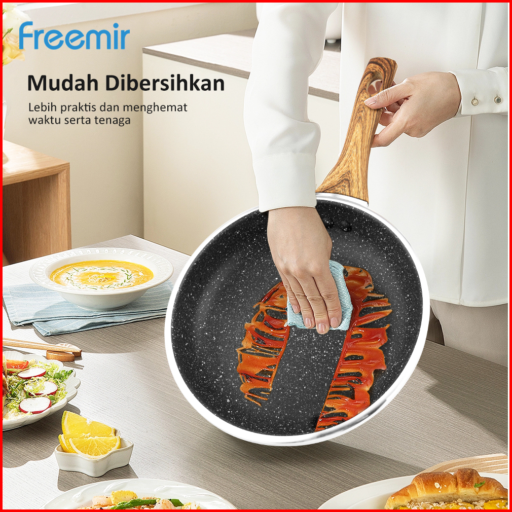 Freemir Wajan Penggorengan 24 Cm Anti Lengket Gagang Kayu Serbaguna