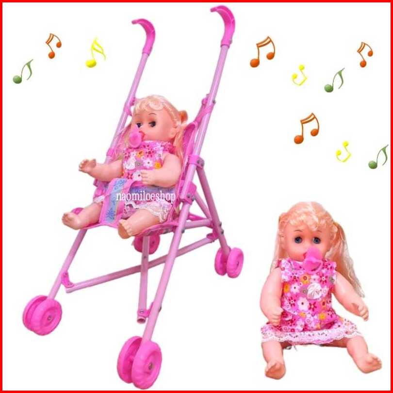 Mainan Anak Dorongan Stroller Boneka Bayi Premium Stoller Dorongan Mainan Boneka Nangis Cabut Dot