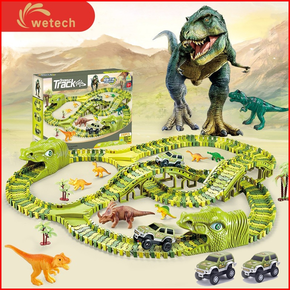 Wetech Dinosaurus Rel Mobil 240pcs Buah Rel Dual Car Mainan Rel Edukatif Mainan Kereta Api Rail