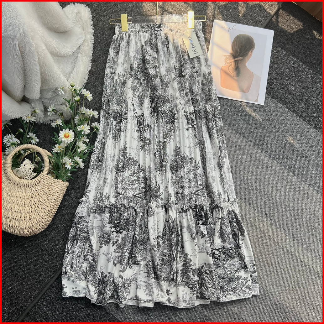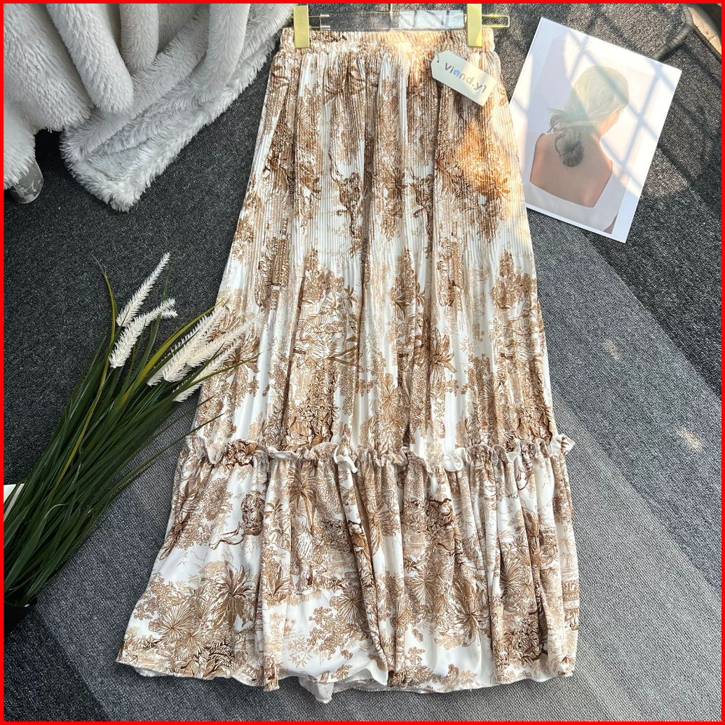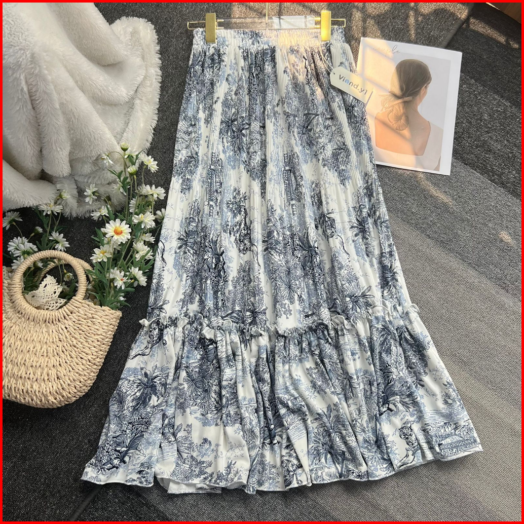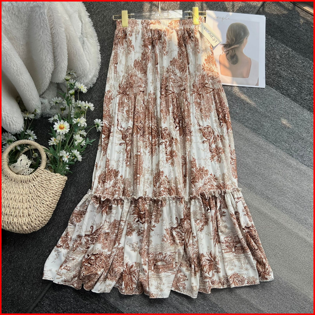 Rok Plisket Bunga Wanita Maxi Skirt Ruffle Flower Cewek Korea Bahan Hyget Premium