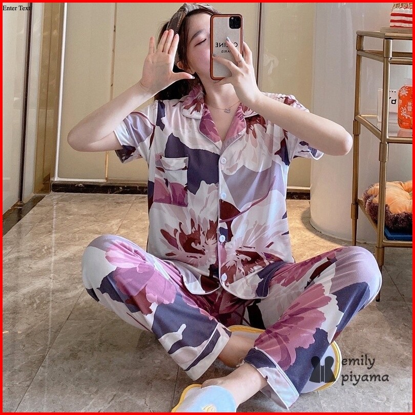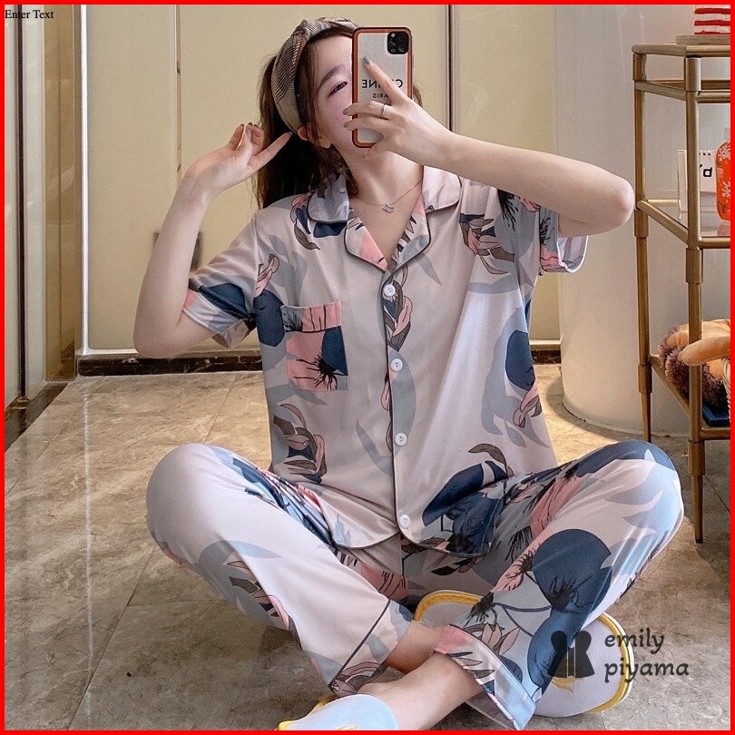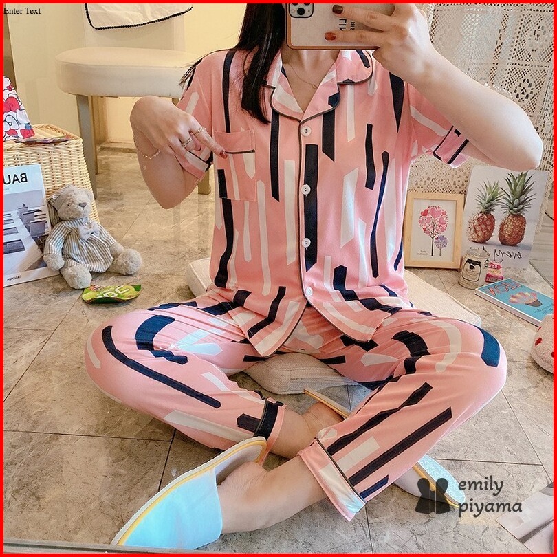 Emily Piyama Baju Tidur Set Piyama Motif Bentuk Lengan Pendek Celana Panjang Premium Pakaian Tidur Wanita Dewasa
