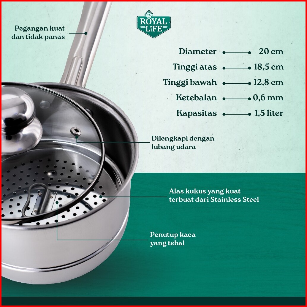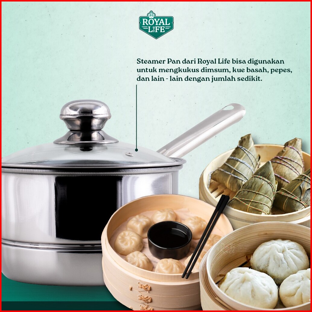 Royal Life Steamer Pan 16cm 20cm Stainless Steel Panci Kukus Stainless Panci Steamer Stainless