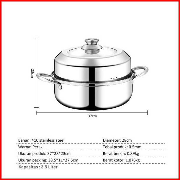 Termurah Panci Steamer Stainless Kukus Siomay 2 Susun Steamer Stainless Panci Kukus 2 Tingkat-steamer Stainless Steel Pa