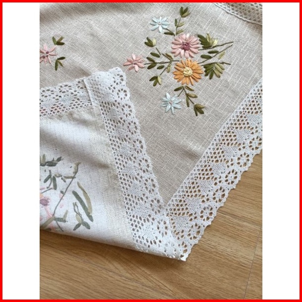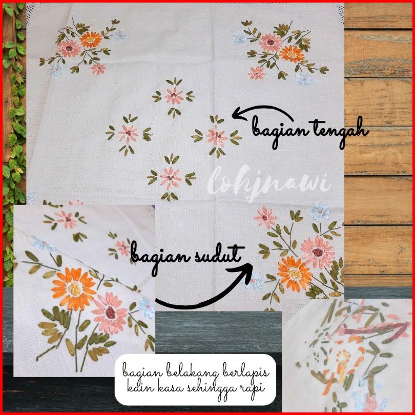 Taplak Meja Sulam Pita Persegi 90x90 Cm Linen Tebal Premium Handmade