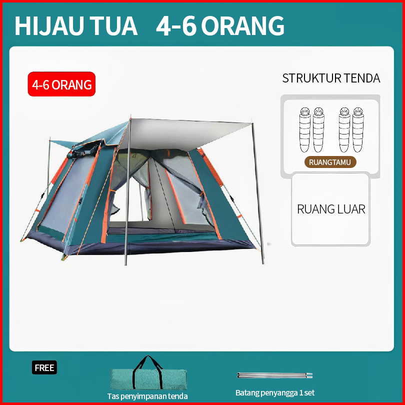 Tenda Camping Kapasitas 4-6 Orang Tenda Gunung Outdoor Dan Indoor Tenda Otomatis