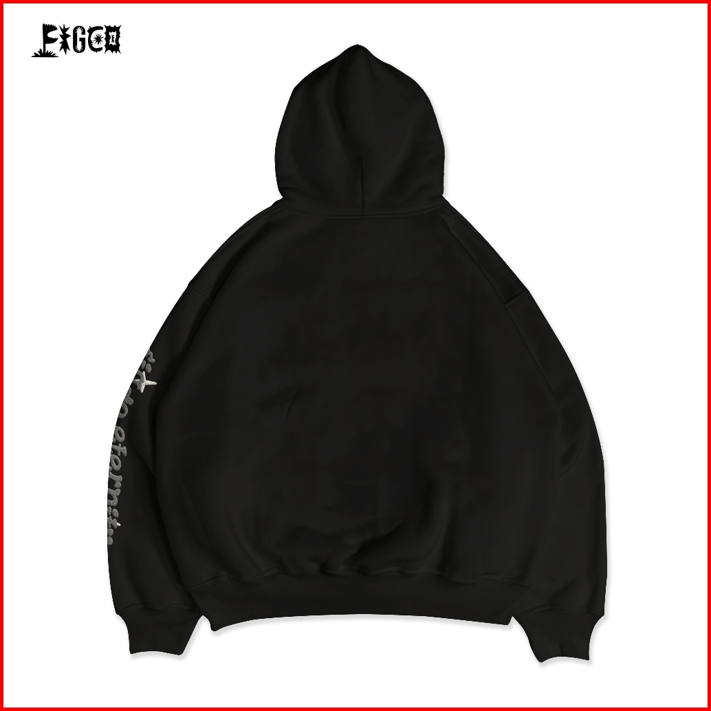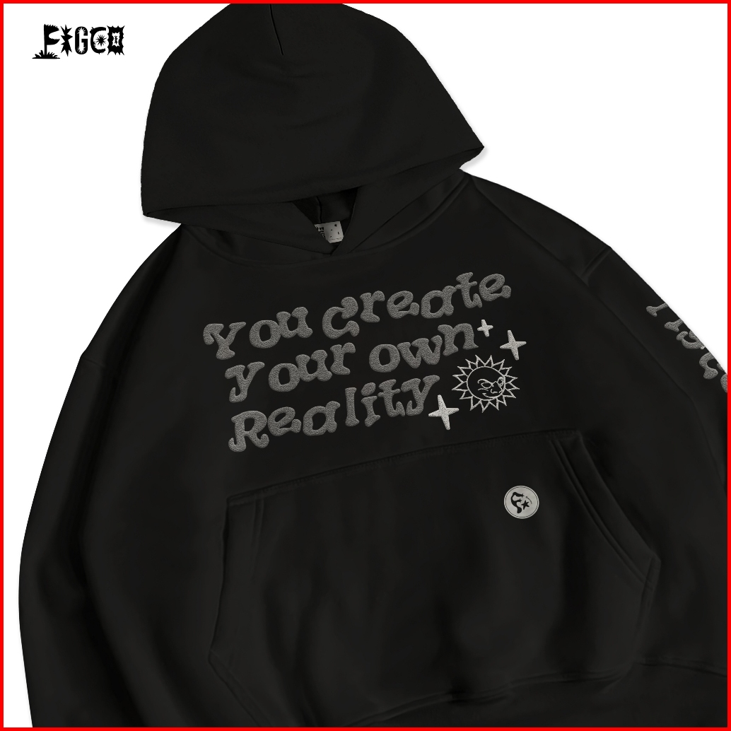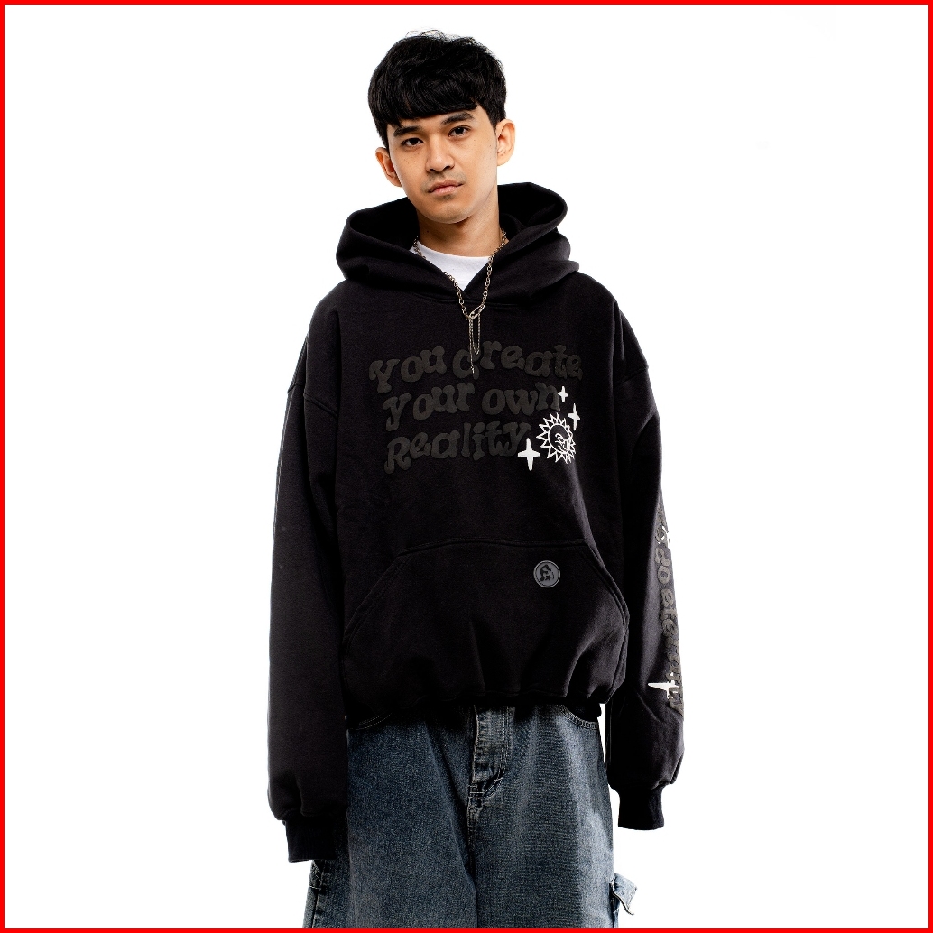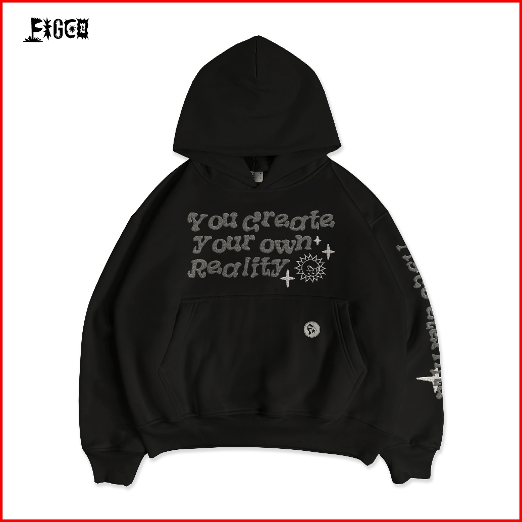 Figco - Hoodie Boxy Hitam Fleece Pullover Reality Face Foaming Puff 3d Black