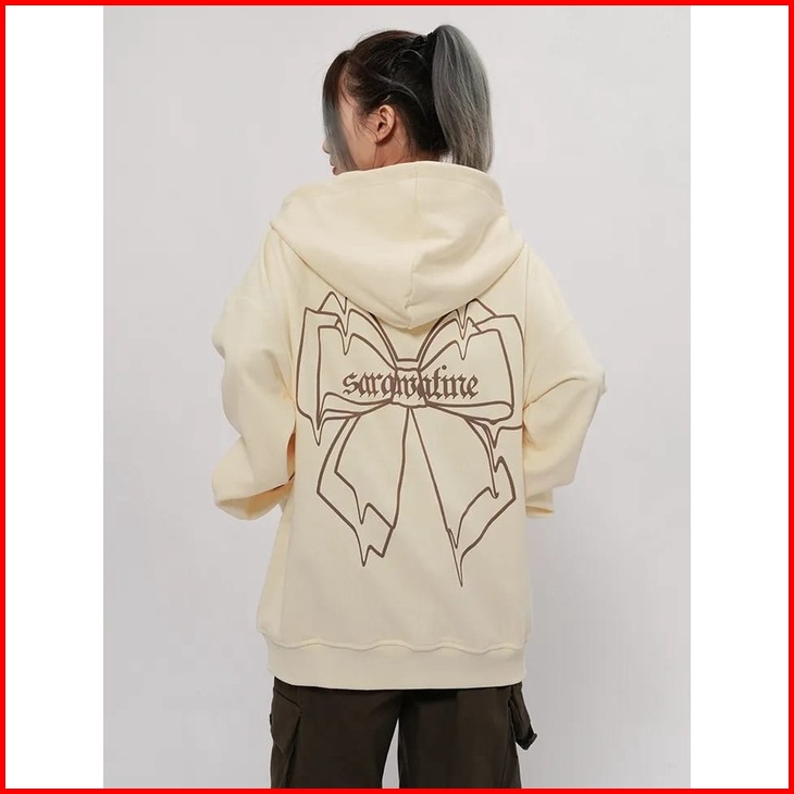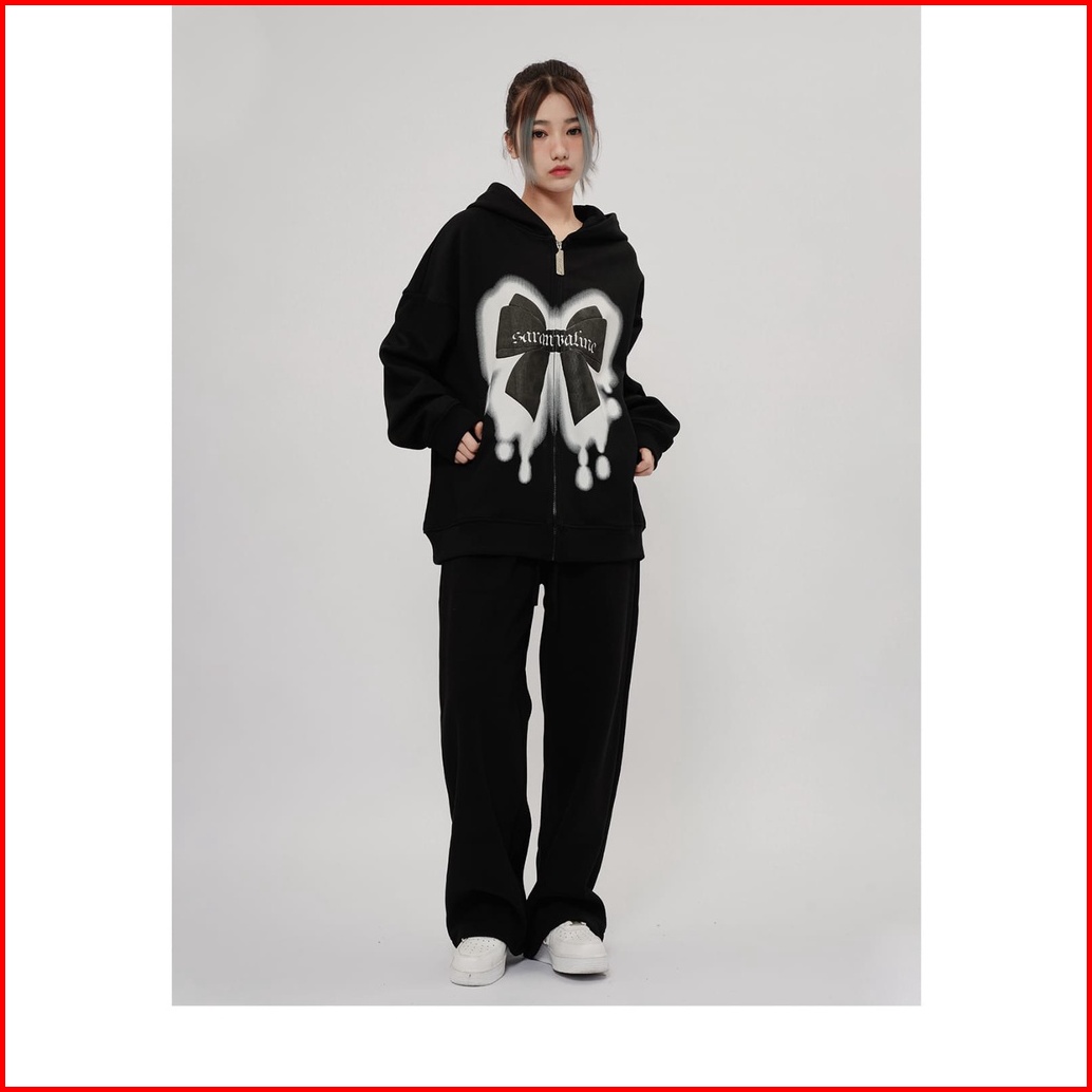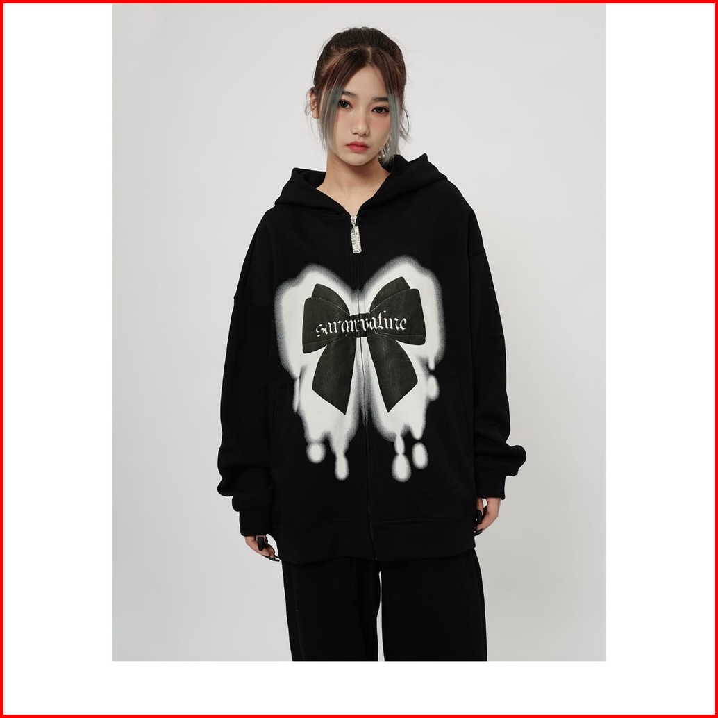 Vallina - Saramatine Ribbon Zip Hoodie Jacket Outerwear Remaja Wanita Korean Style Premium - Pita Samaratine