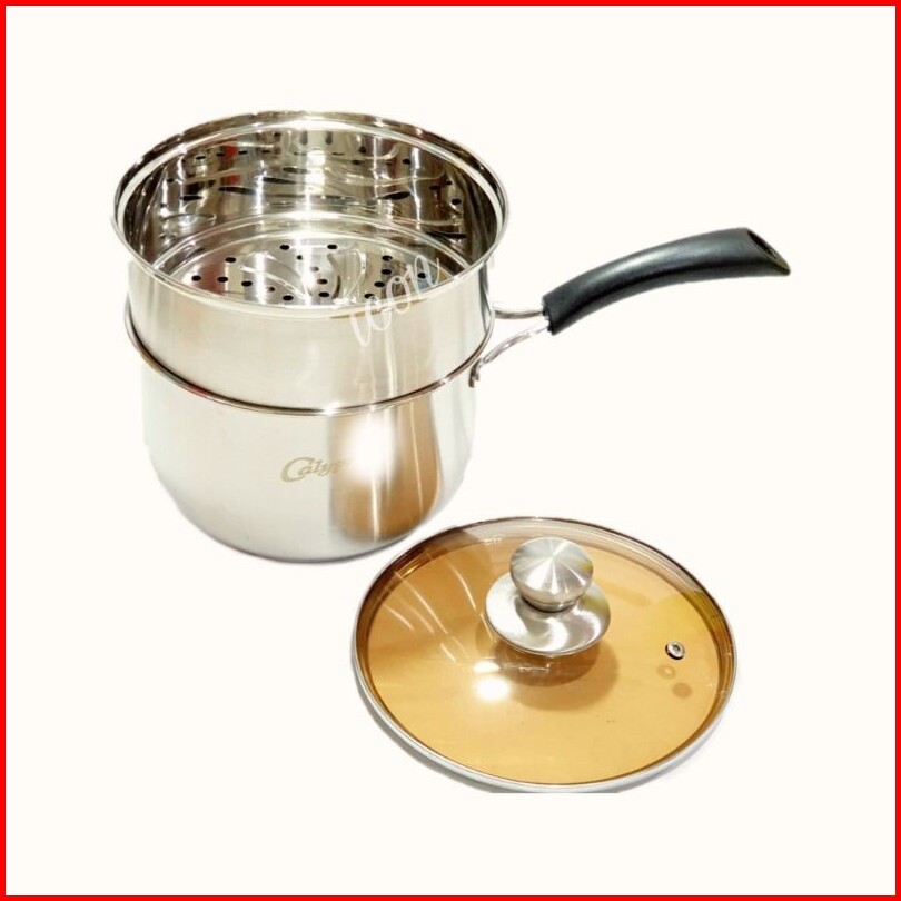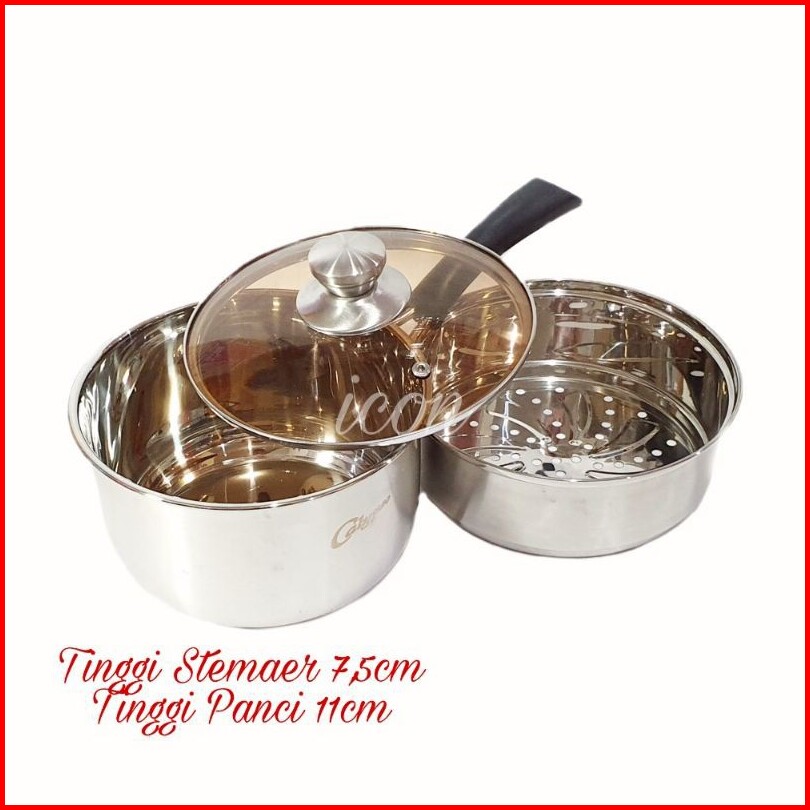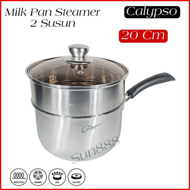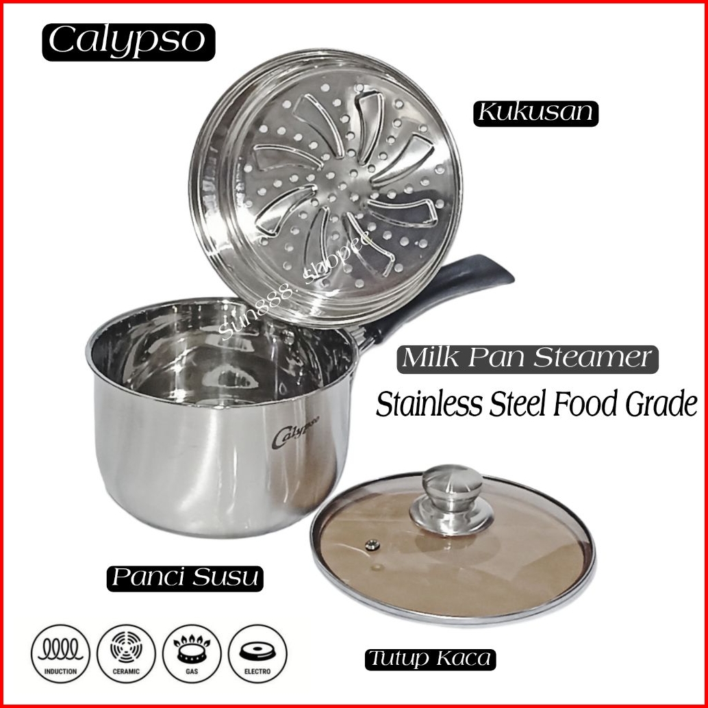 Calypso Panci Kukusan Kecil Stainless Food Grade Tebal Panci Susu Mpasi Steamer 20cm Tutup Kaca