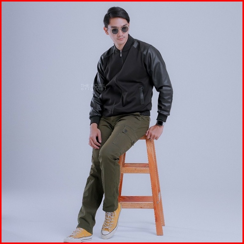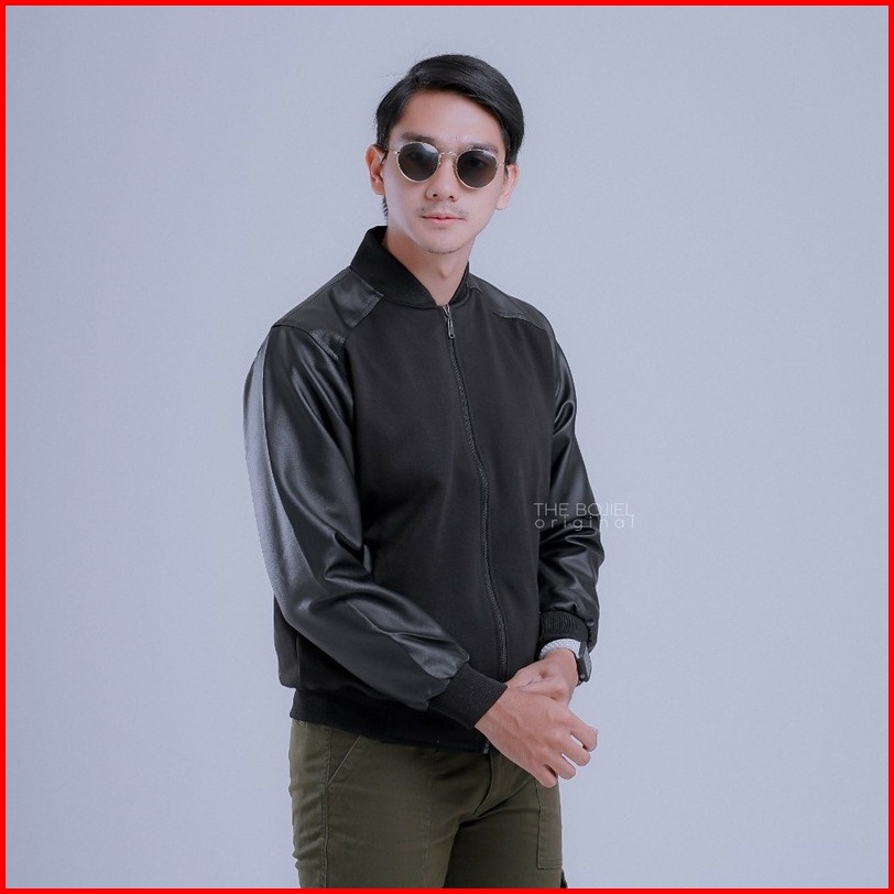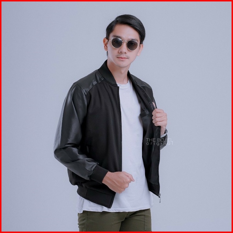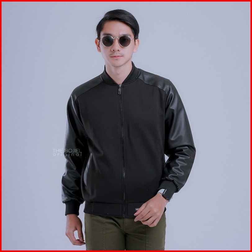 Jaket Bomber Pria Ekslusive Kombinasi Semi Kulit Dan Fleec Sweater Nyaman Di Pakai