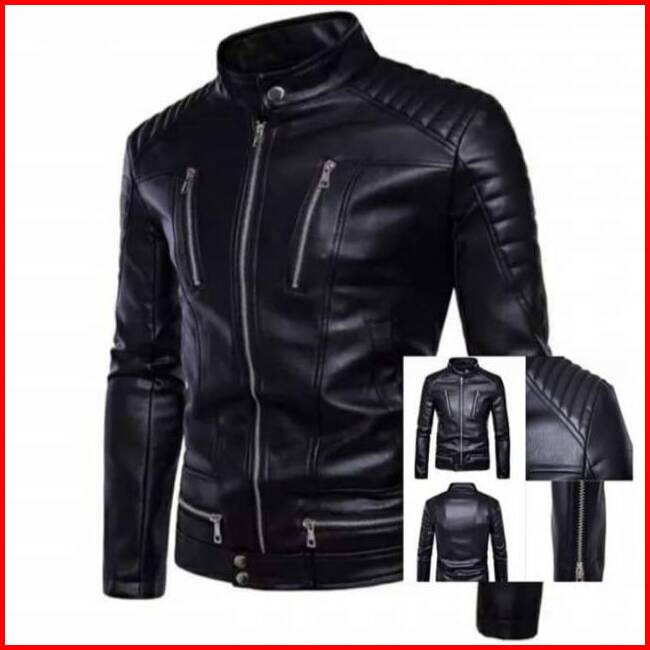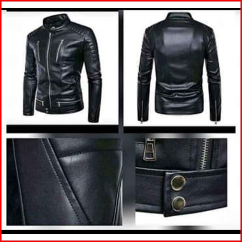 Premium Jaket Kulit Pria Original Slimfit Ariel Slimfit List Merah Hitam Size M L Xl 2xl 3xl