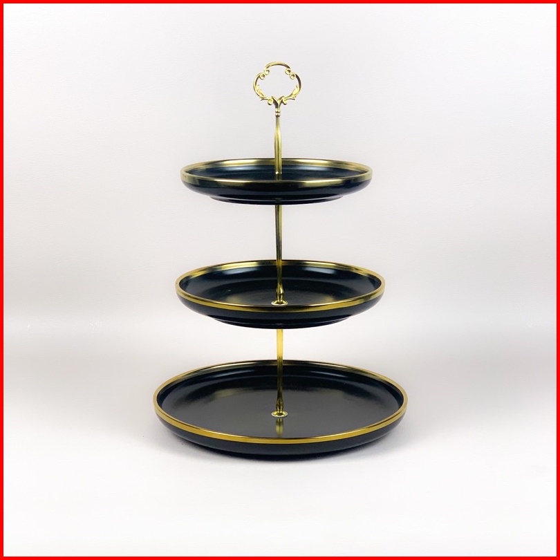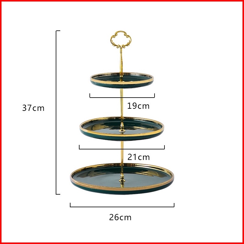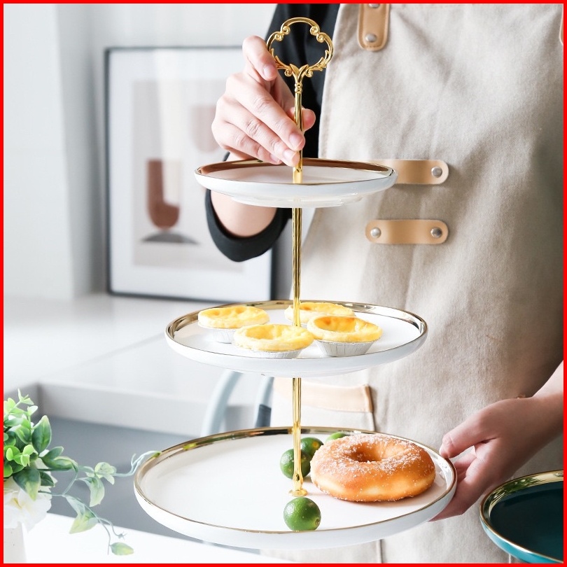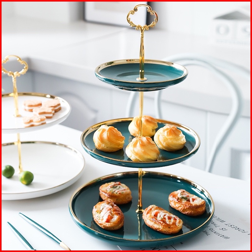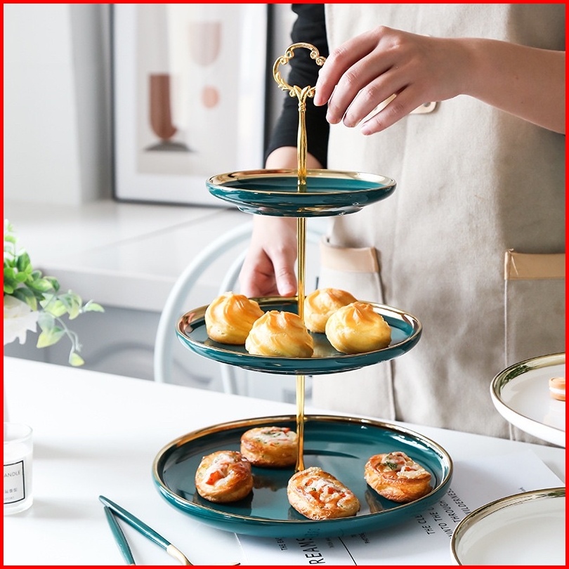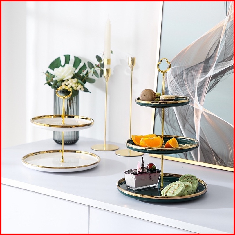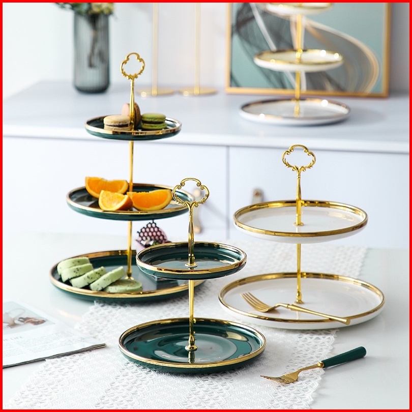 Ashome Piring Kue Tingkat Keramik Berbagai Warna List Double Layer Dessert Cake Piring Kue Tingkat Mewah Piring Kue Ting