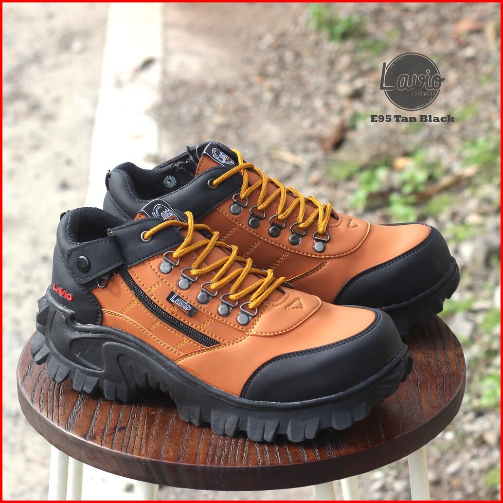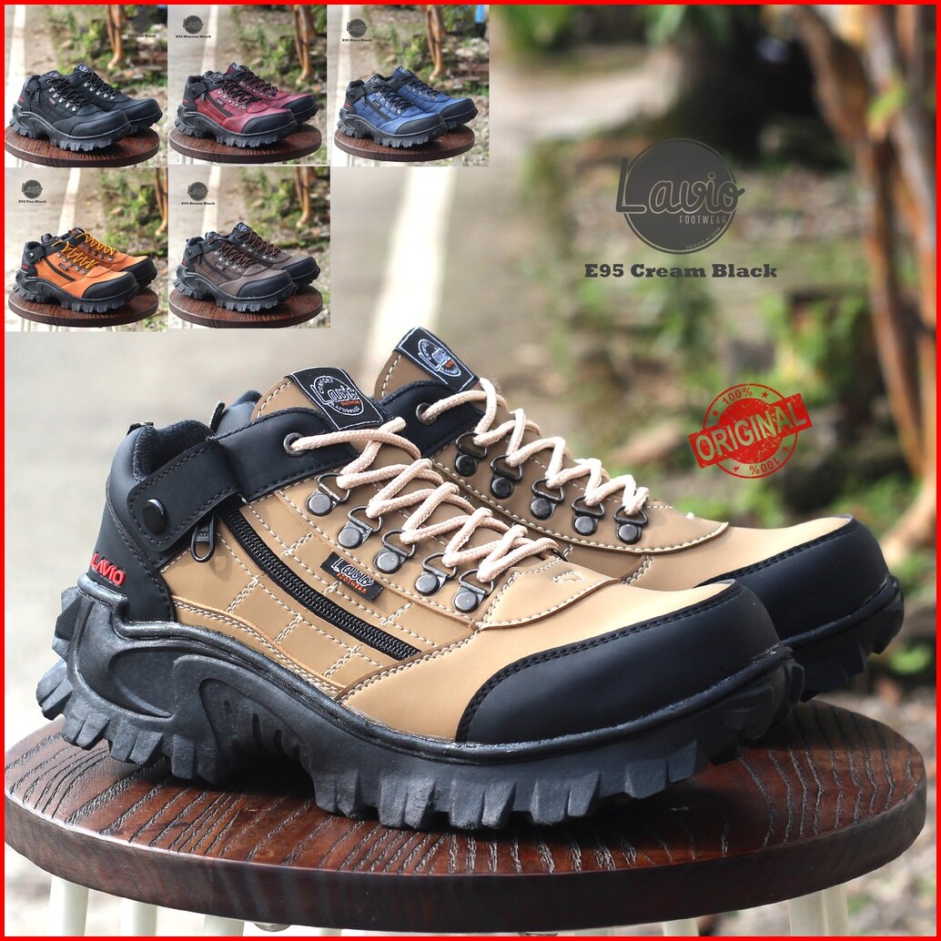 Lavio Sepatu Pria Boots Safety Low Pendek Kerja Proyek Gunung Hiking E95 Original Best Seller