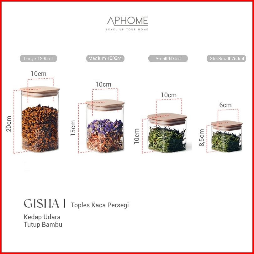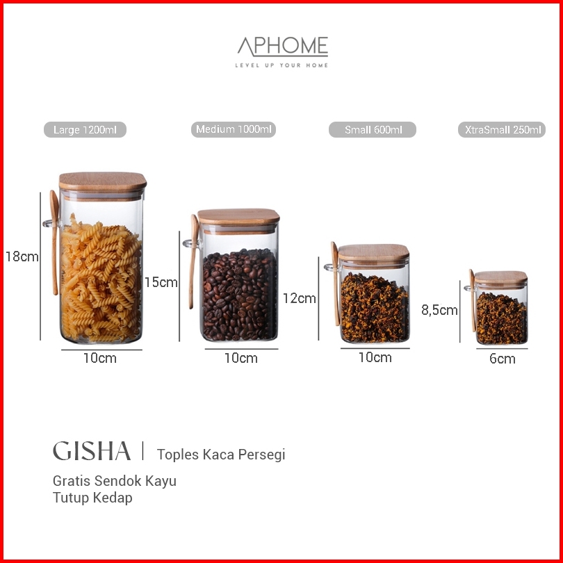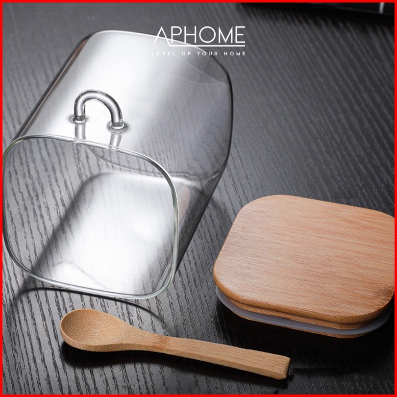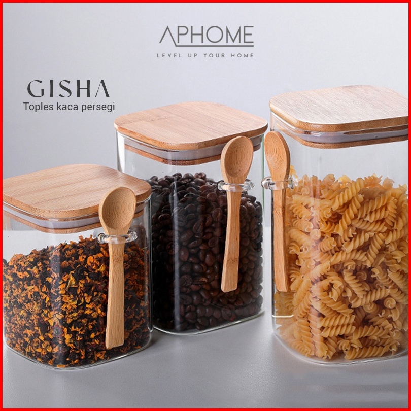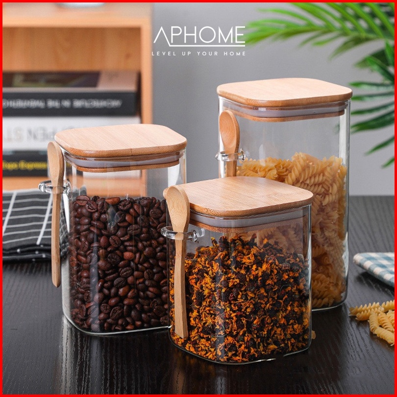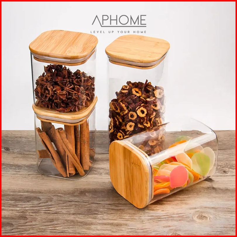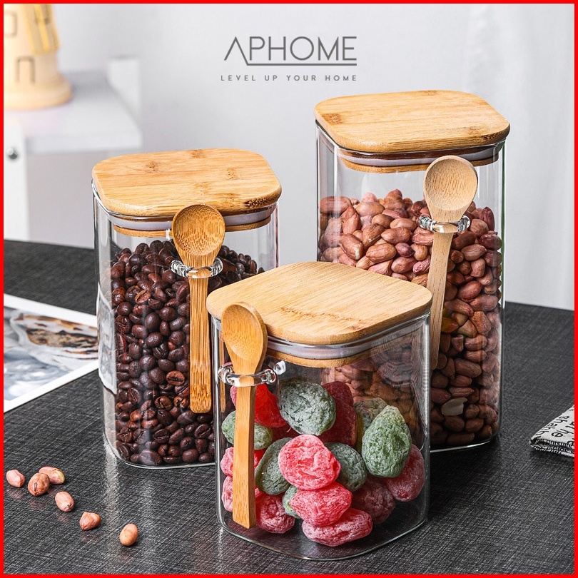 Aphome Toples Kaca Toples Makanan Dengan Tutup Bambu Kedap Udara Free Sendok Gisha