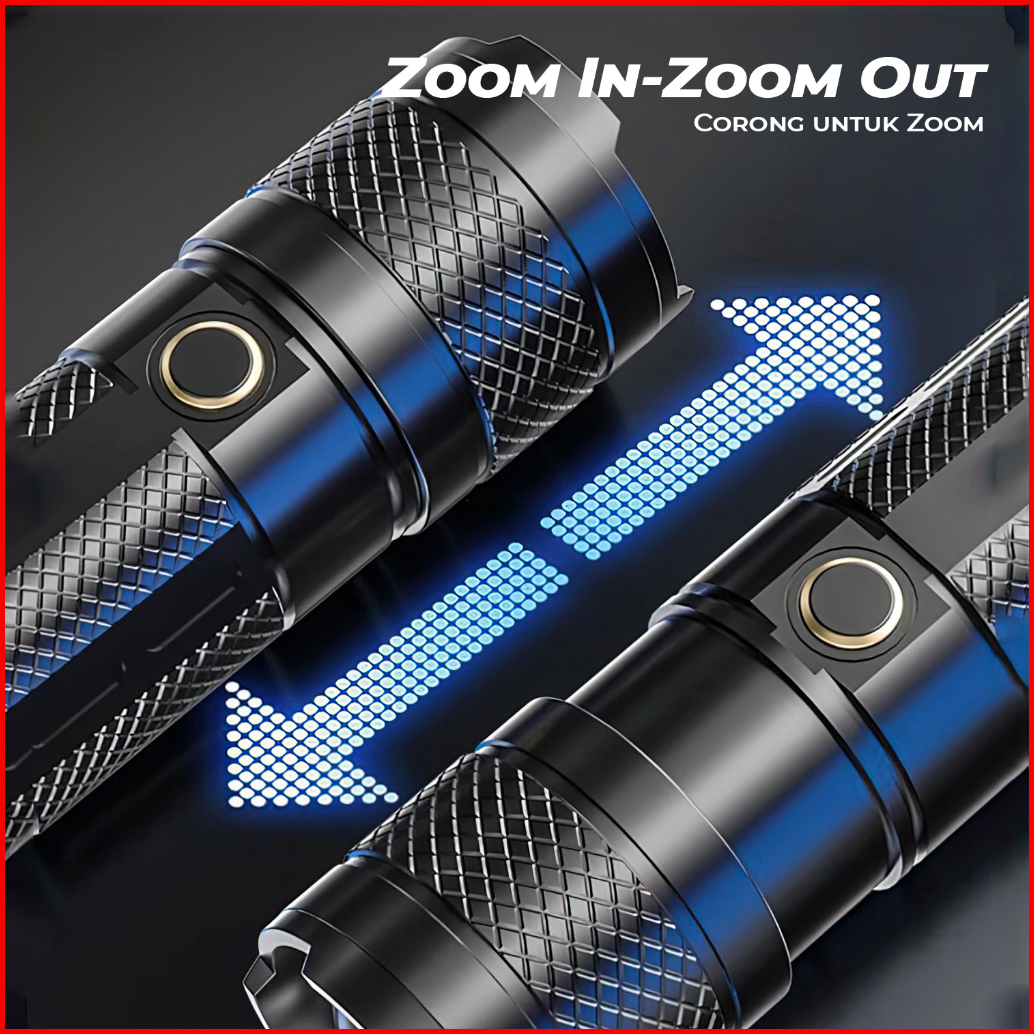 Suksestech Senter Led Cob Cas Zoom In Out 9 Mode Super Terang Good Quality Flashlight Anti Air S86