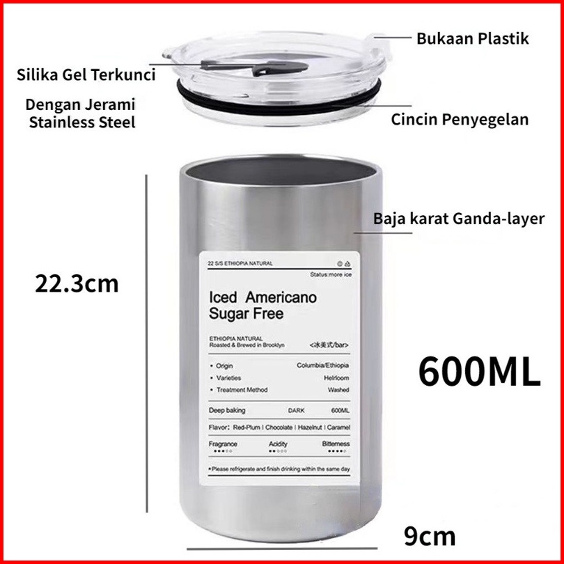 Codbotol Minum 600ml Bahan Stainless Steel 600ml Stainless Steel Tumblr Coffee Simple Elegant Cangkir Gelas Kopi