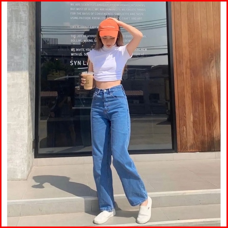Highwaist Loose Jeans Celana Panjang Wanita Jeans Highwaist Kulot Jeans Jenjang