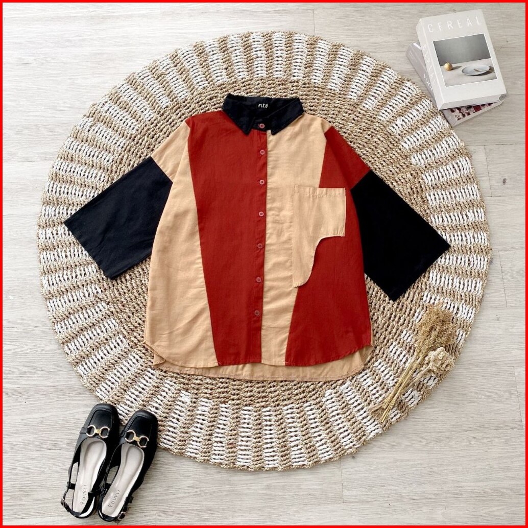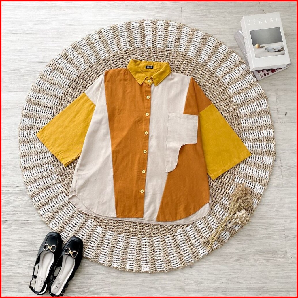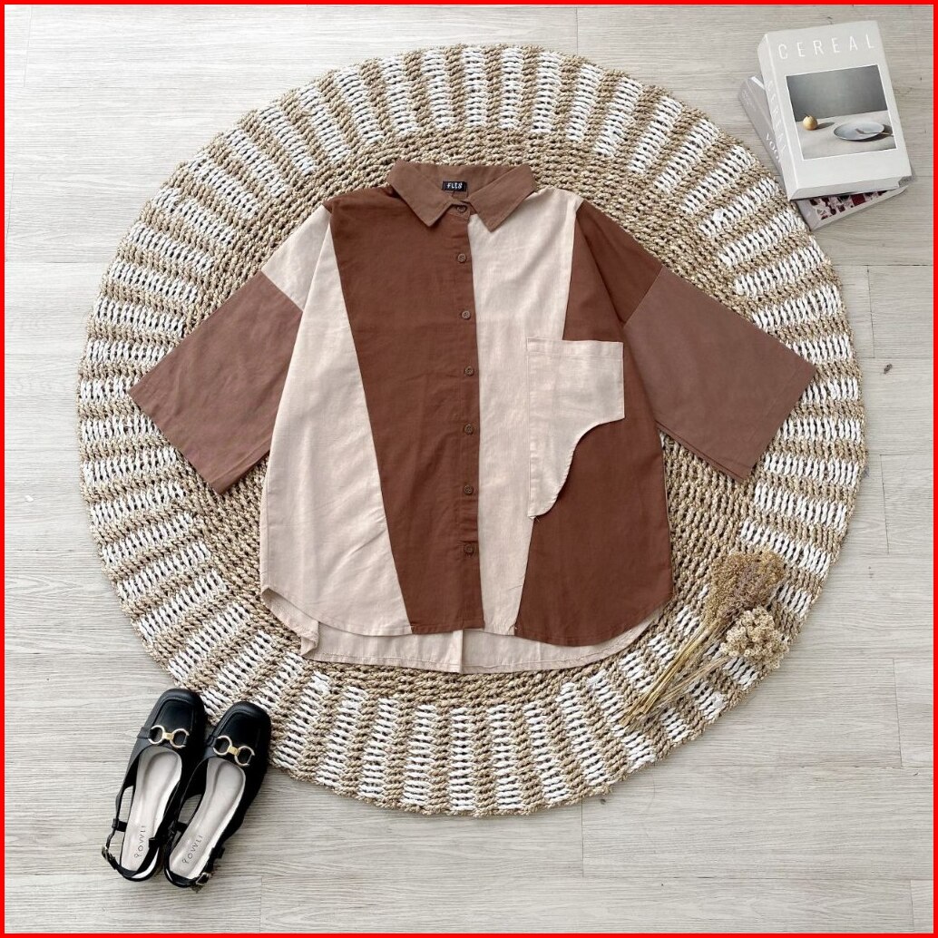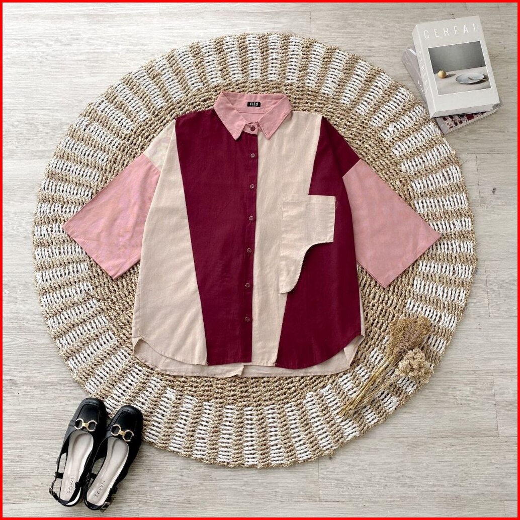 Maiza Shirt Oversize Top Atasan Kemeja Linen Rami Polos Basic Fashion Baju Muslim Kerja Casual Wanita Remaja Premium Ter