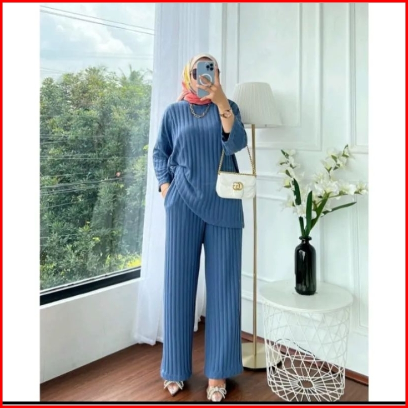 Set Knit Import Terbaru Setelan Wanita Kekinian Kain Hornet Premium Tebal Adem