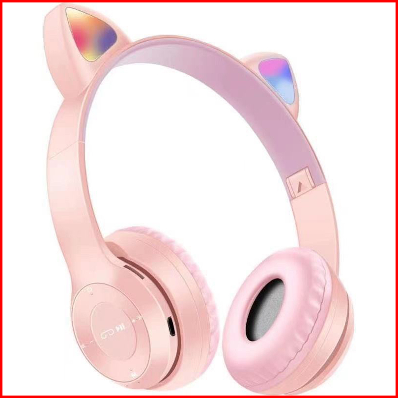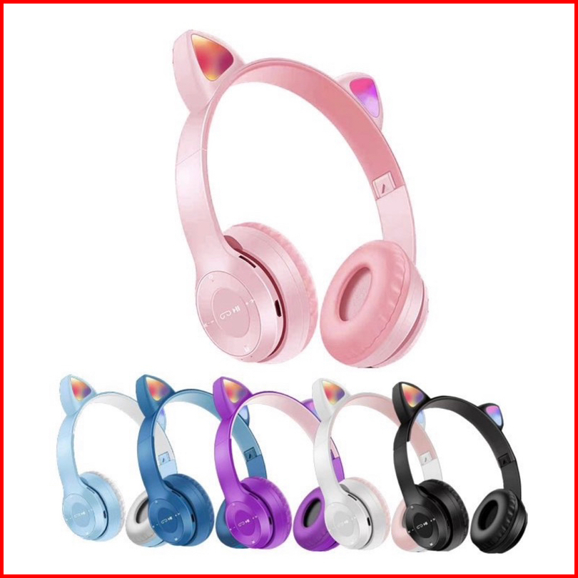 Headphone Wireless Bluetooth Led Cat Ears P47m Headset Bando Kucing