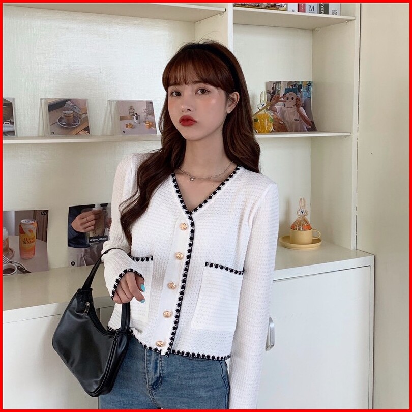 Korean Cardigan Crop Rajut Wanita V Neck Kardigan Wanita
