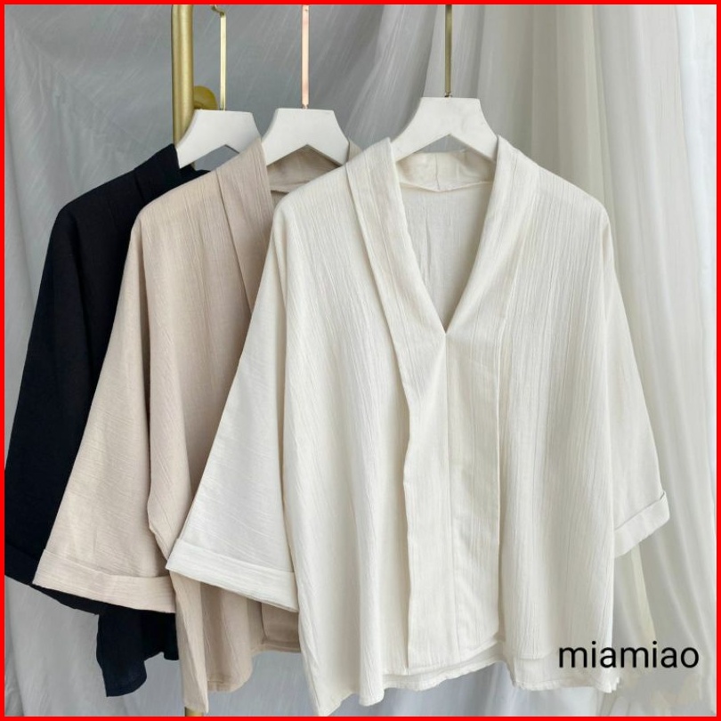 Adelia Linen Shirt Blouse Korea Wanita Atasan Kemeja Wanita