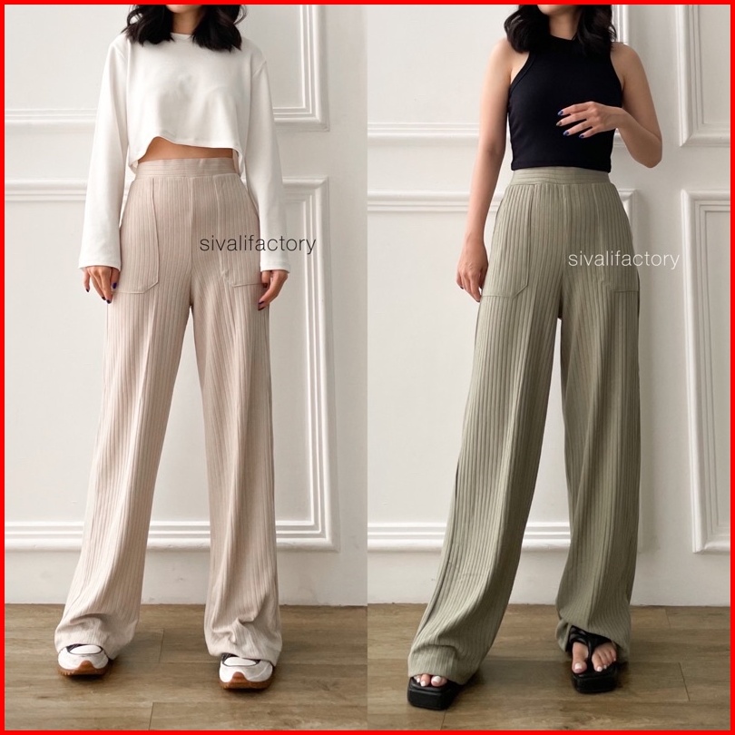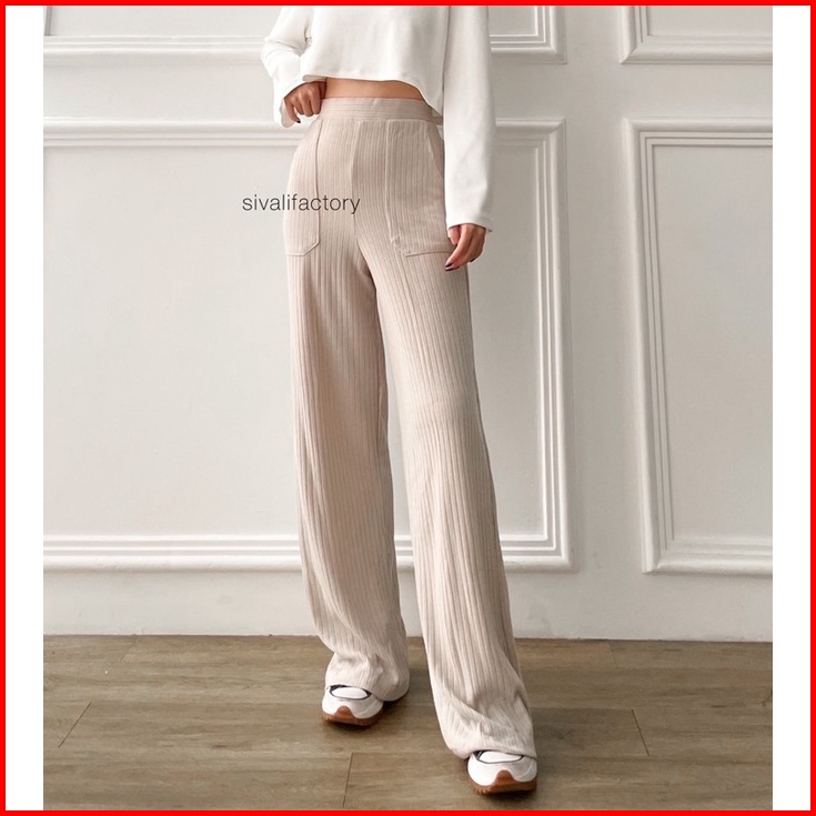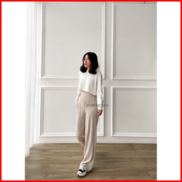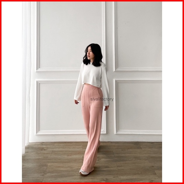 Sivali Yuna Pants - Celana Kulot Knit Highwaist - Cullote Pants - Celana Wanita 632