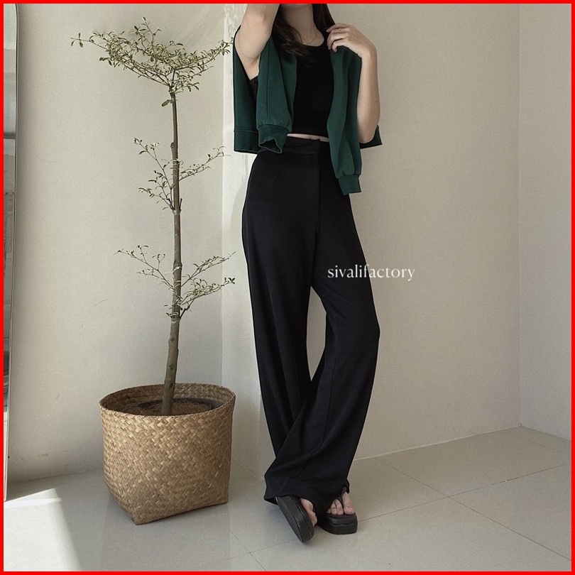 Sivali Cozie Pants Highwaist Cullote Pants - Rib Knit Pants - Celana Kulot Wanita - Petite Friendly - Celana Anti Kusut