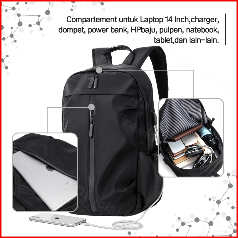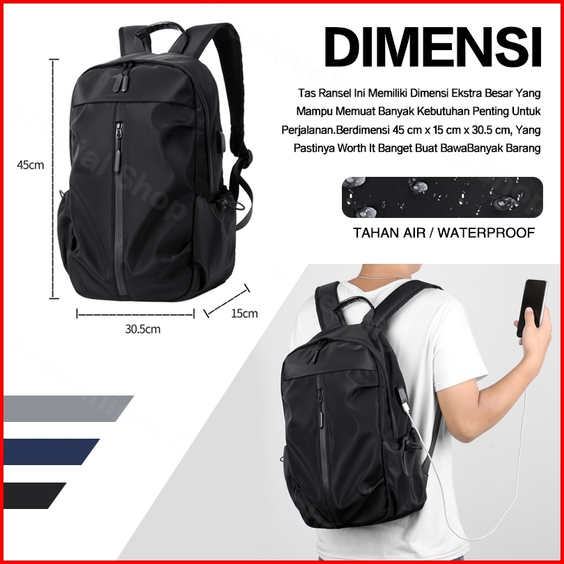 Freeknight Tas Ransel Backpack Fashion Tas Punggung Sport Unisex Tas Laptop Usb Charge Tas Travel Tas Sekolah Polos Tr70