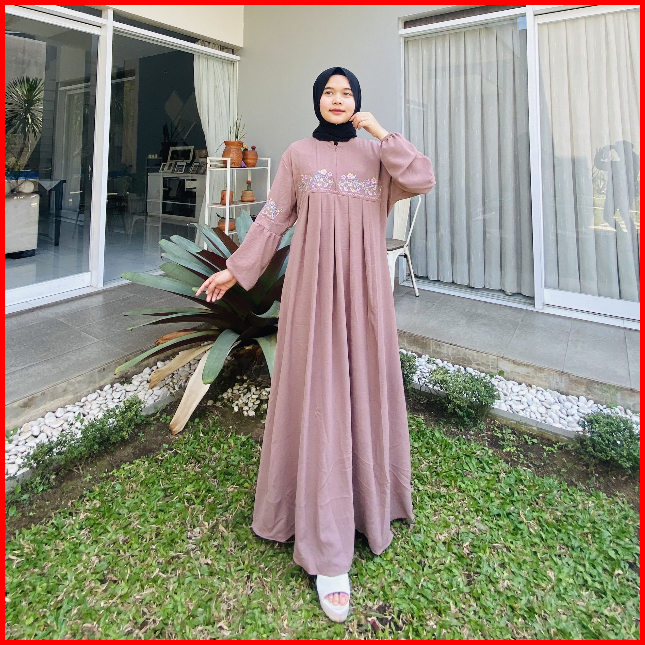 Dress Tresha Bahan Crinkle Air Flow Premium Baju Lebaran 2023 Fashion Muslim Wanita Kekinian Gamis Wanita Terbaru Viral