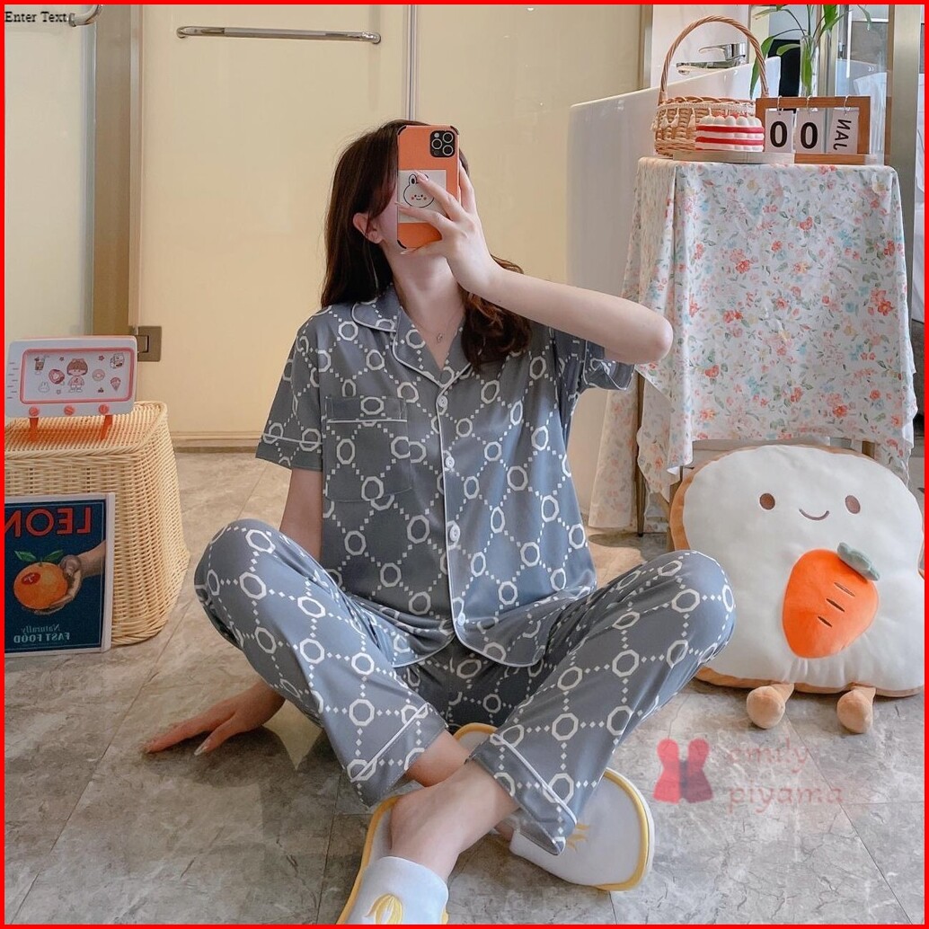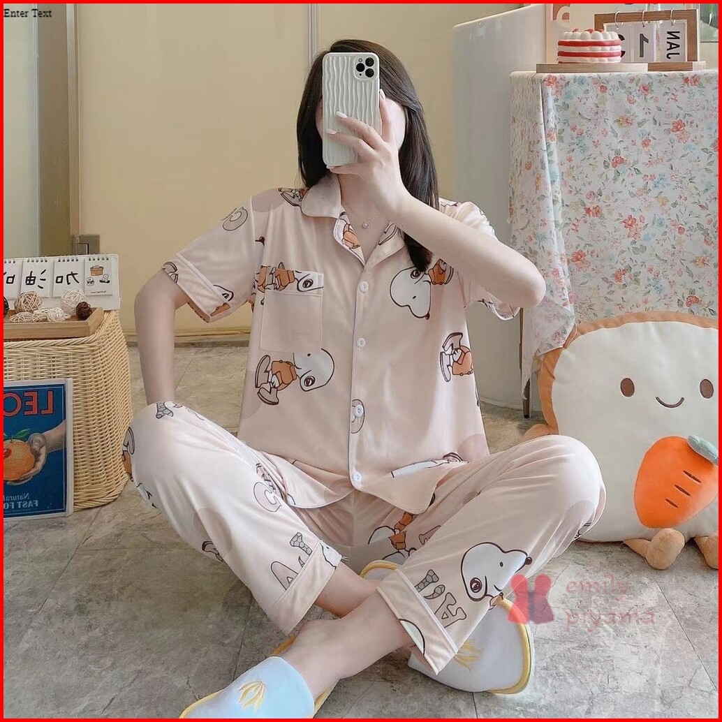 New Motif Emily Piyama Baju Tidur Set Piyama Motif 4 Lengan Pendek Celana Panjang Premium Pakaian Tidur Wanita Dewasa