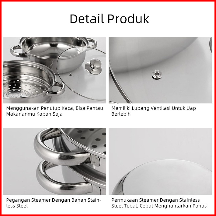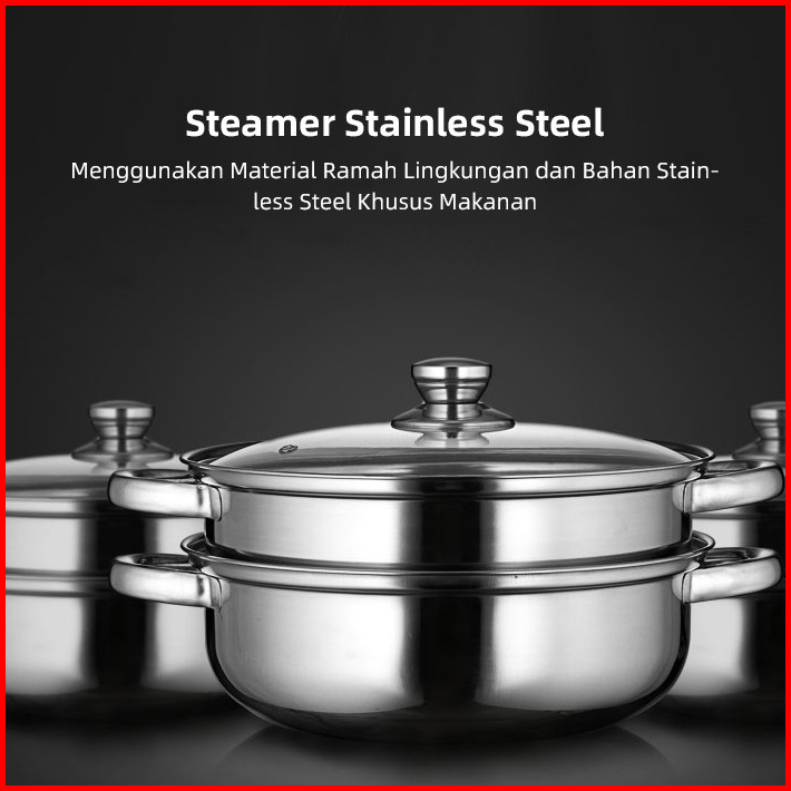 Steamer Panci Kukus Dandang 2 Susun 2 Tingkat Stainless Steel