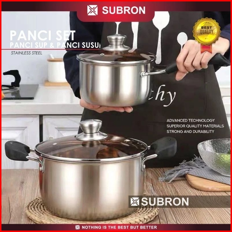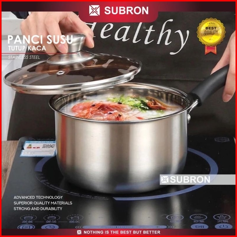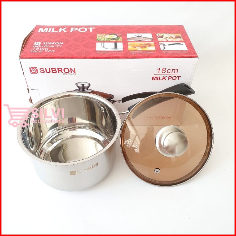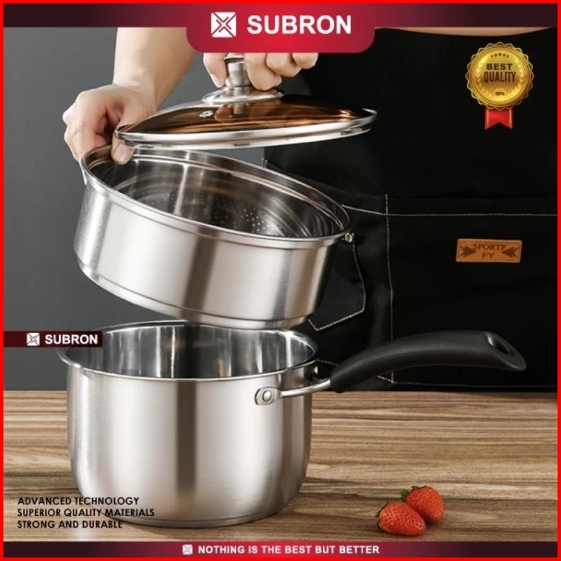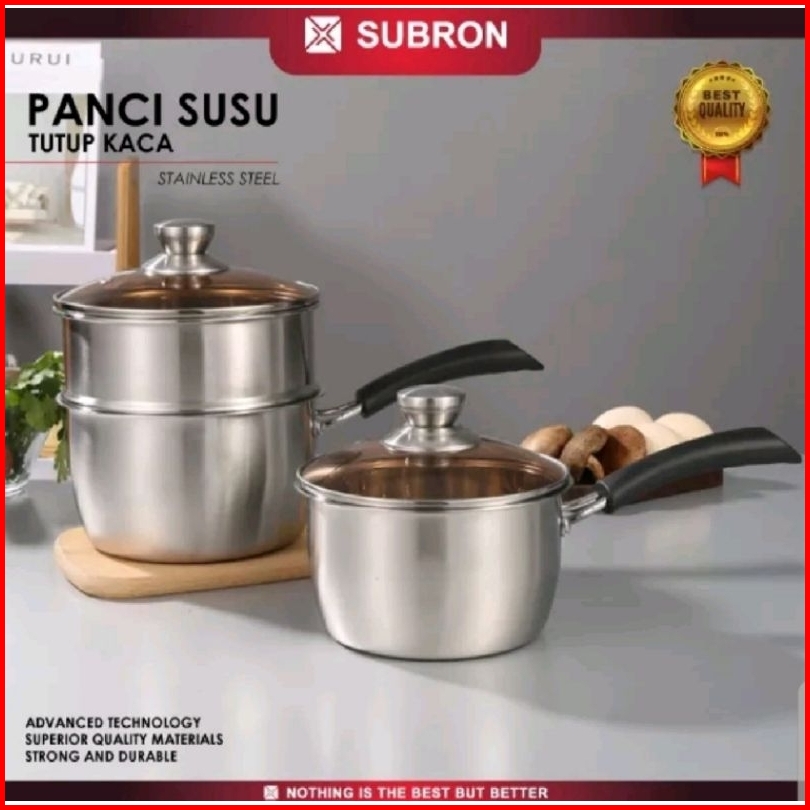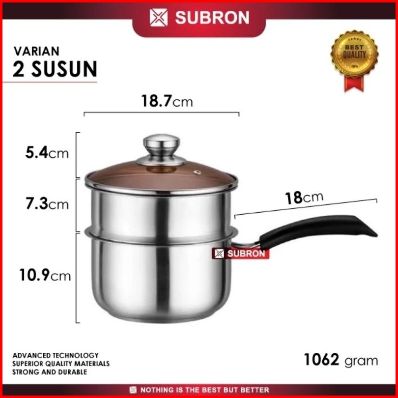 Panci Susu Dan Panci Sup Kukus 2 Susun Premium Subron Ff M18 Ff M20 Ff S20 Stainless Tutup Kaca Premium Elegant Milk Pot