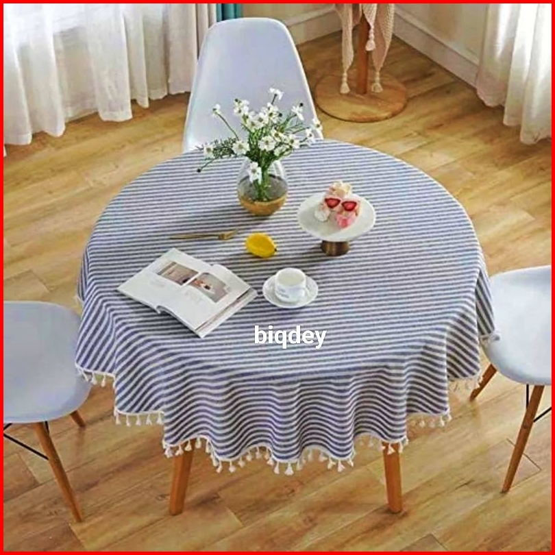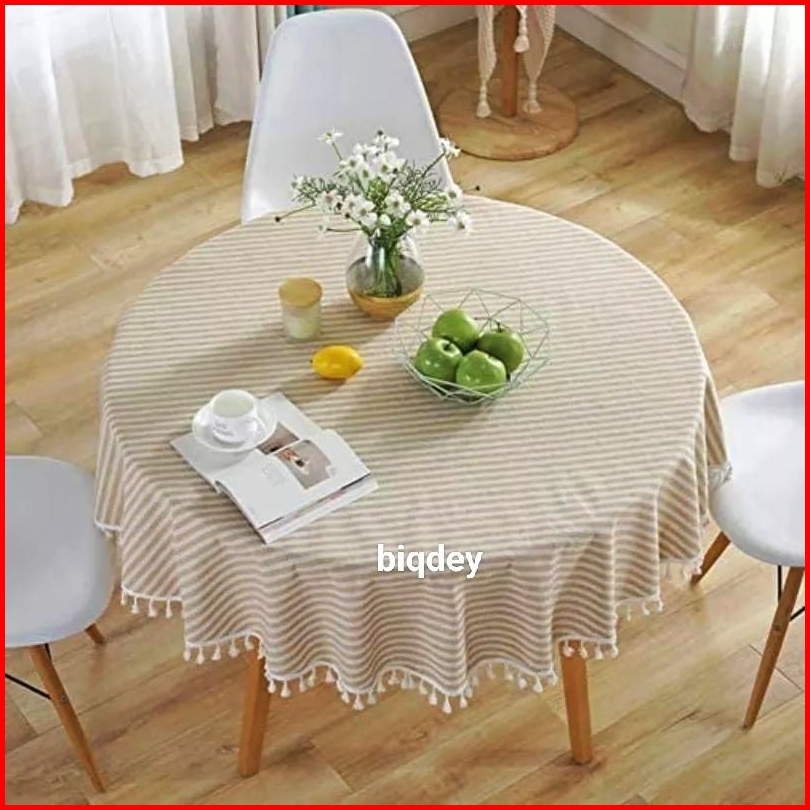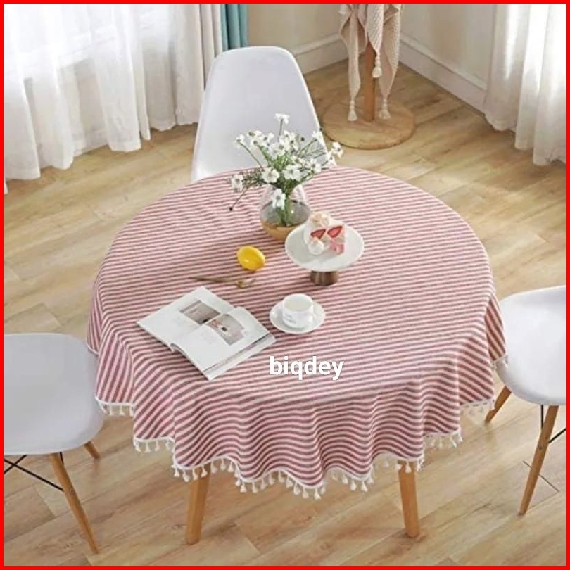 Taplak Meja Bundar Salur Renda Rumbai Cantik