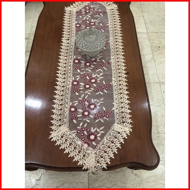 Taplak Meja Table Runner Renda Brokat Ukuran 40x135cm