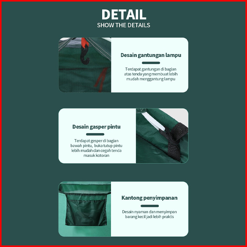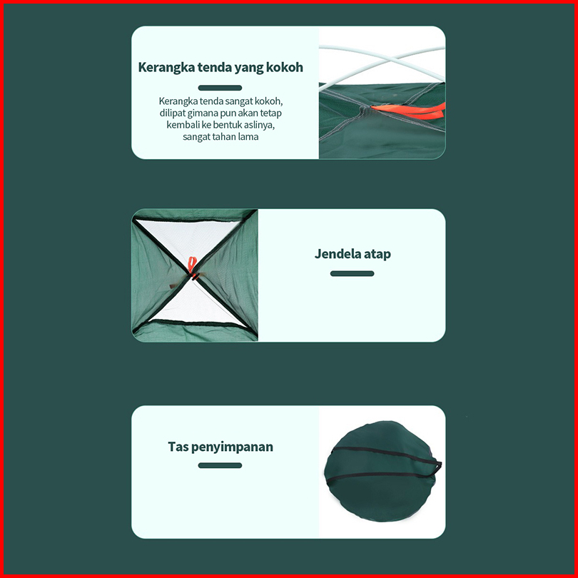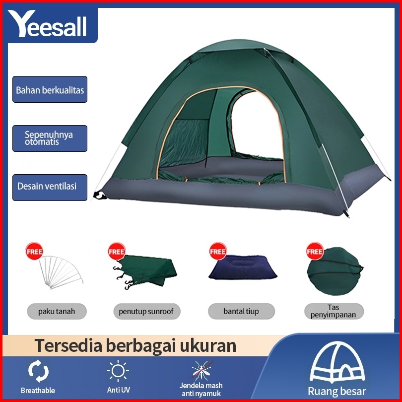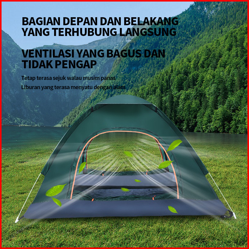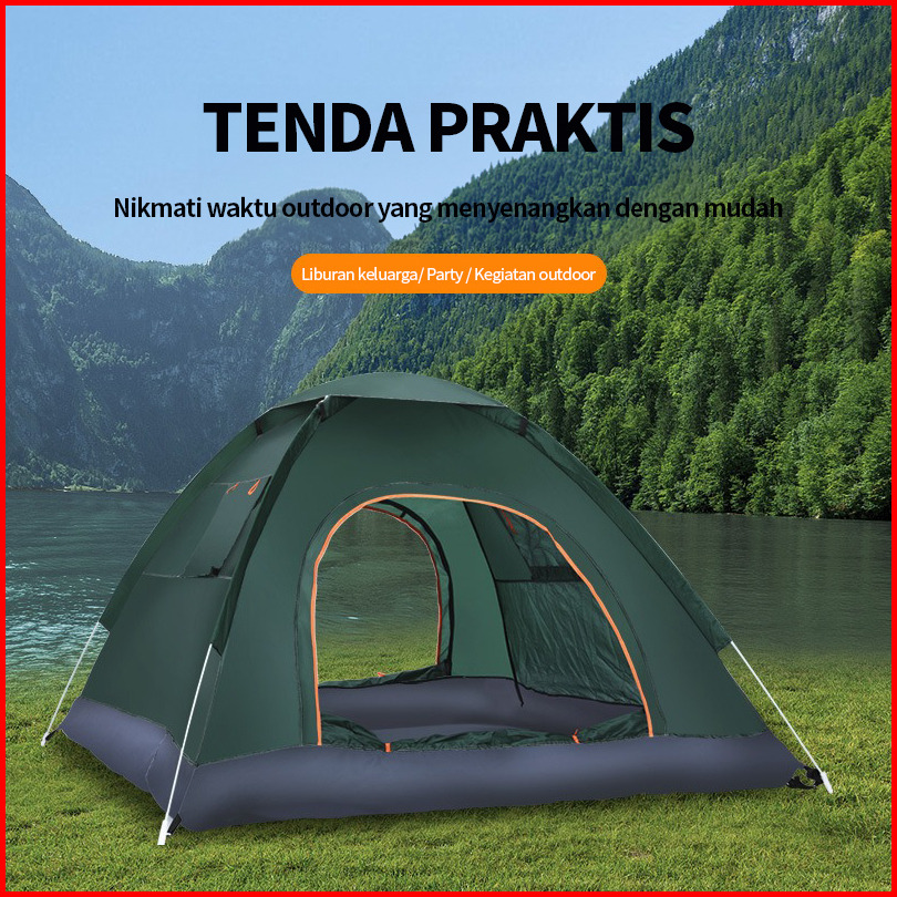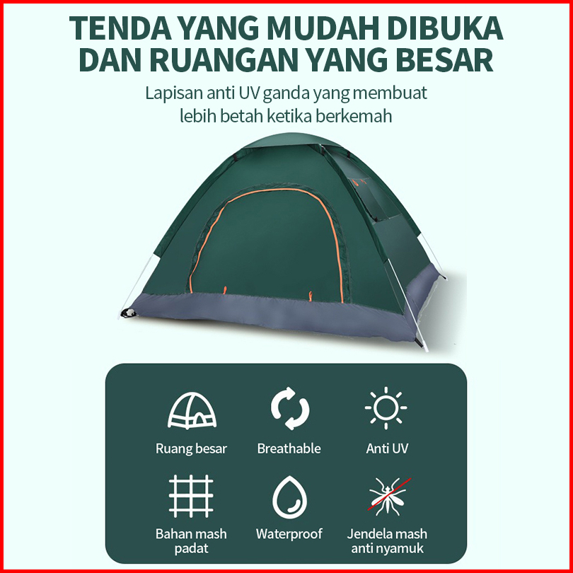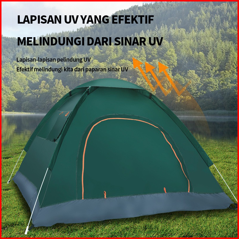 Tenda Hijau Camping Kapasitas Luas 3-4 Orang Tenda Otomatis Outdoor Indoor Tenda Gunung