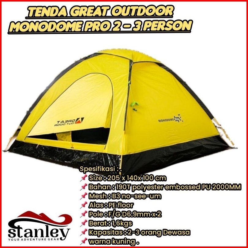 Tenda Great Outdoor Tendaki Monodome Pro 2 Kuning Tenda Hyu Kap 2 Tenda Camping Tenda Original Tenda Original