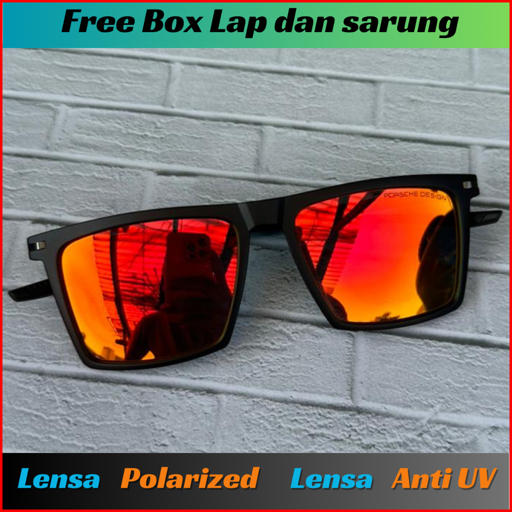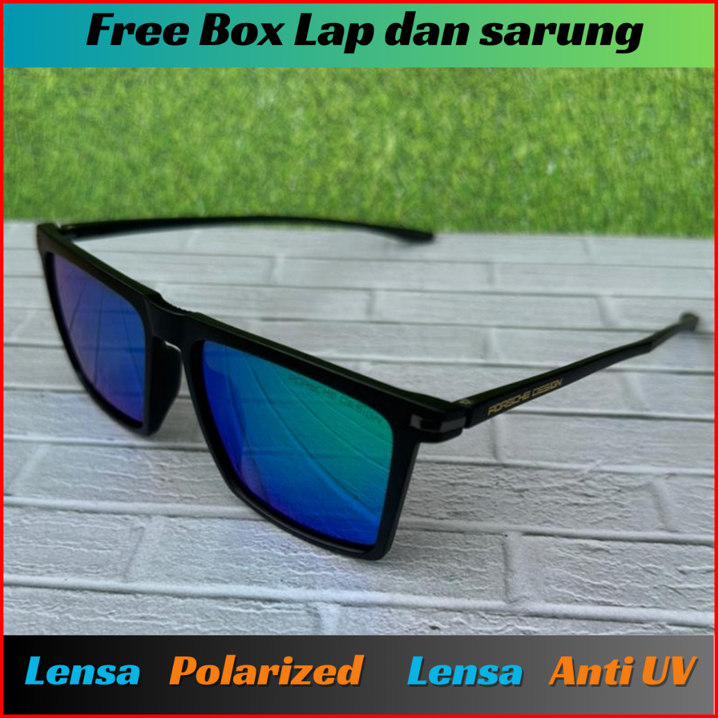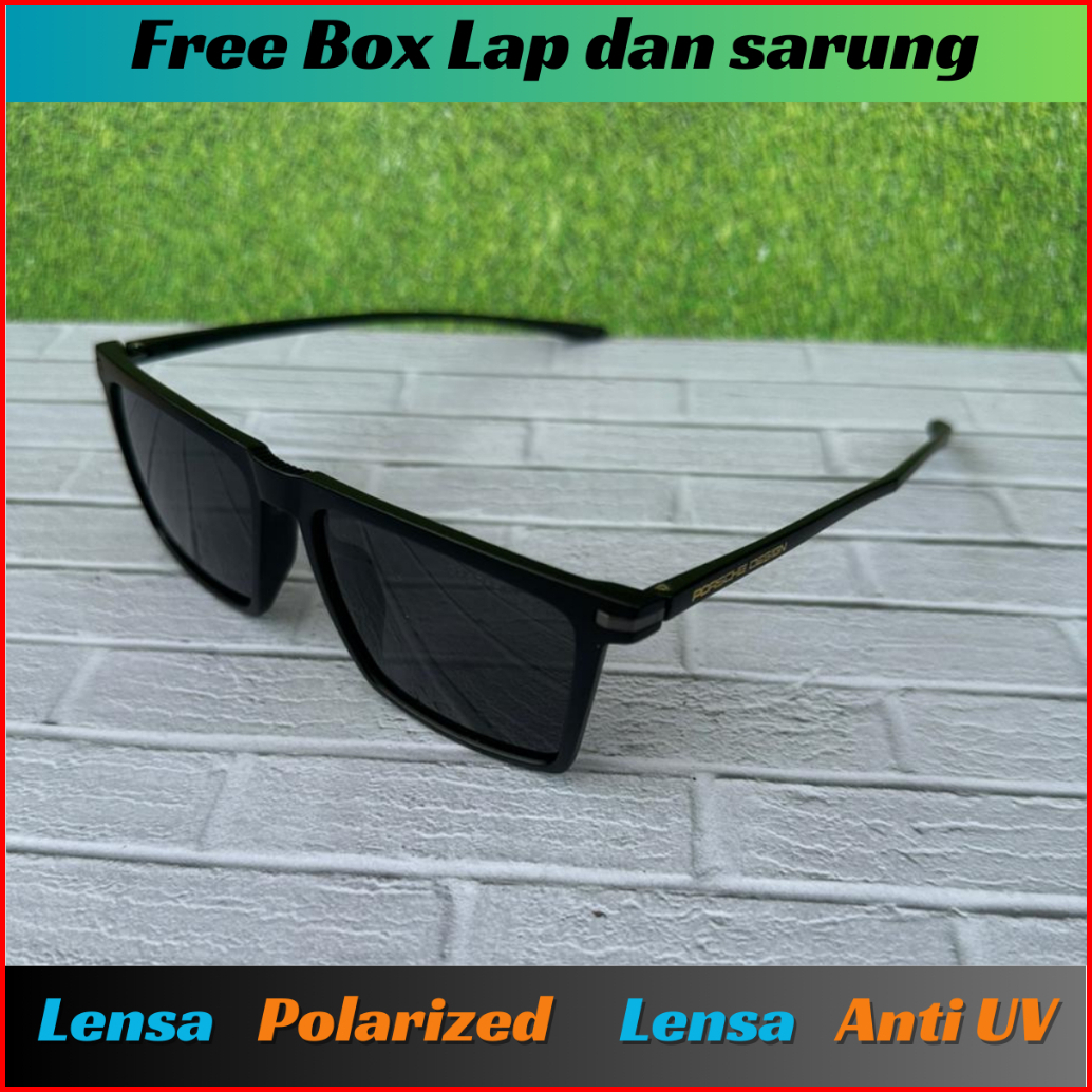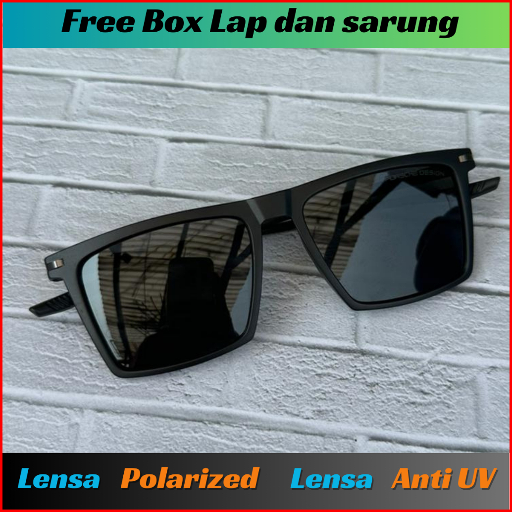 Kacamata Polarized Pria Porsce Design Flex Original Anti Radiasi Sunglasses Hitam Bingkai Penuh