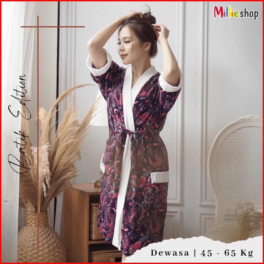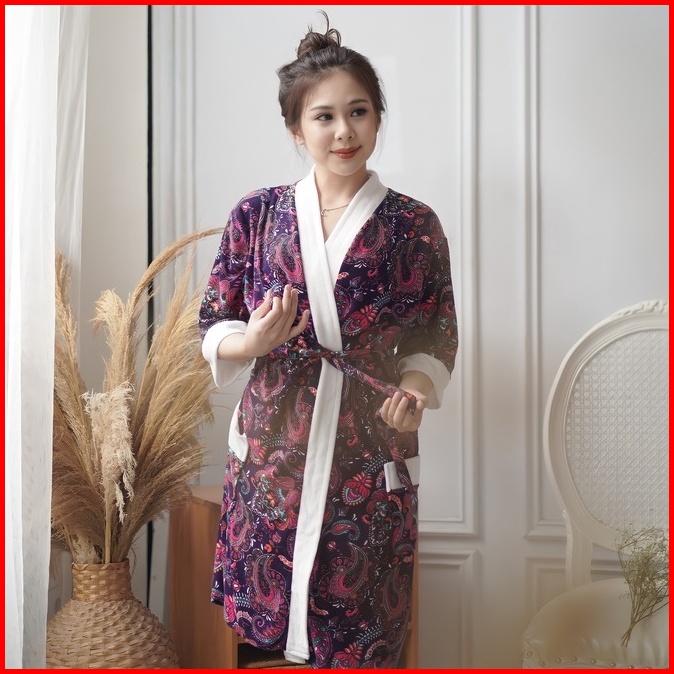 Kimono Handuk Dewasa Wanita Size L Xl Standar Jumbo Jubah Mandi Baju Handuk Motif Batik