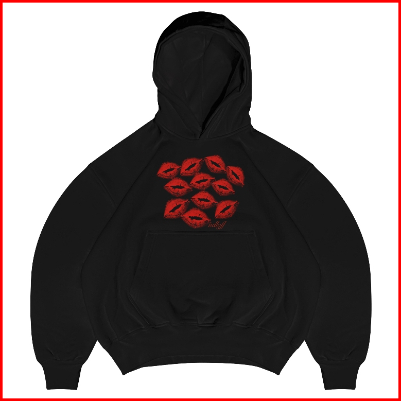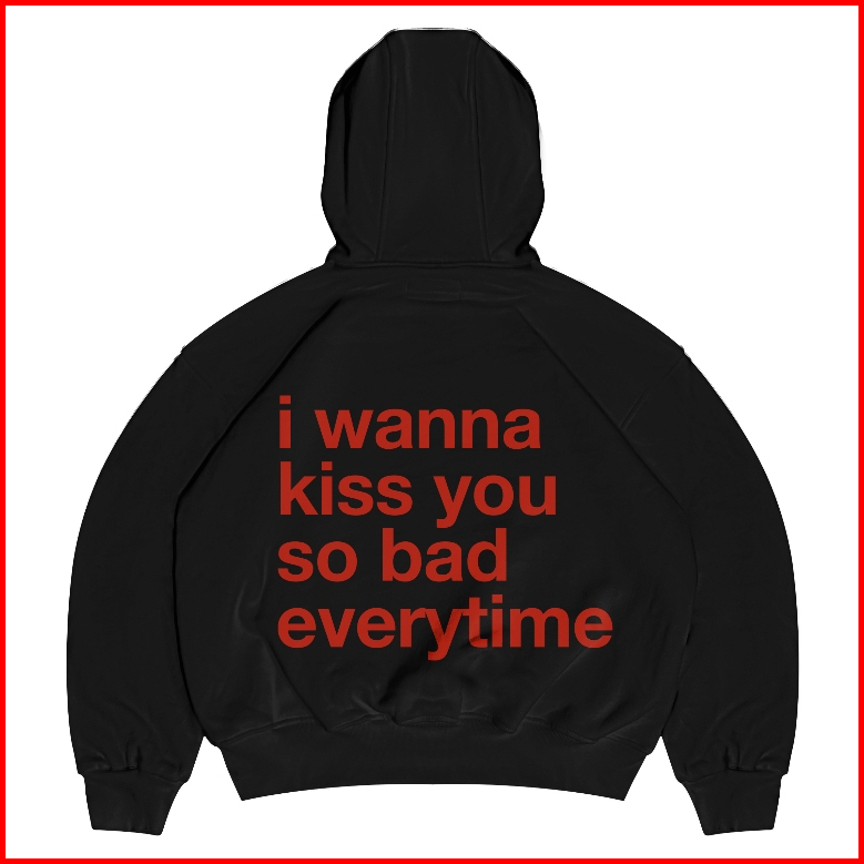 Udloff Hoodie Boxy Black Oversize I Wanna Kiss You 280 330 Gsm Unisex Hoodie Best Seller Premium