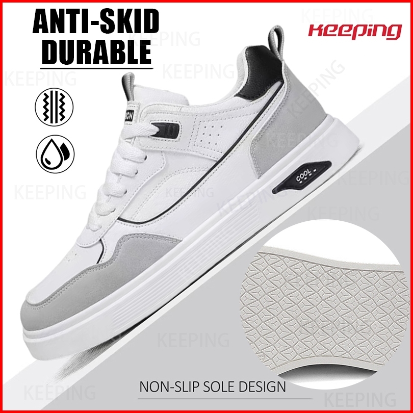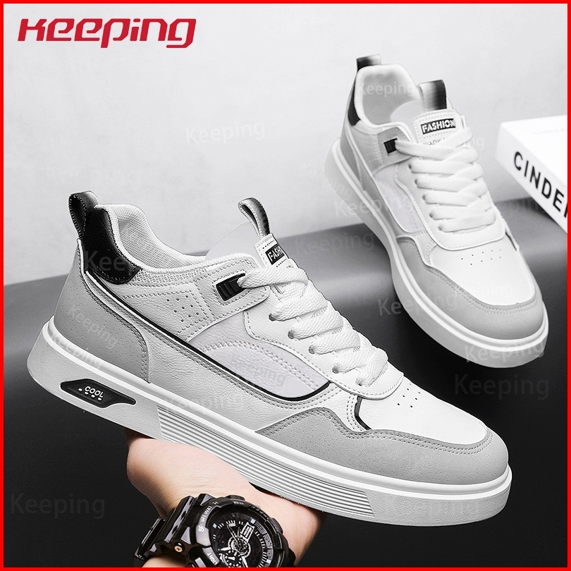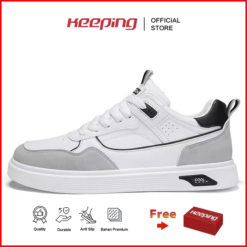 Keeping Sepatu Pria Putih Sneakers Kulit Kuliah Sport Shoes Sepatu Jalan Sekolah Cowok Keren Ksr116