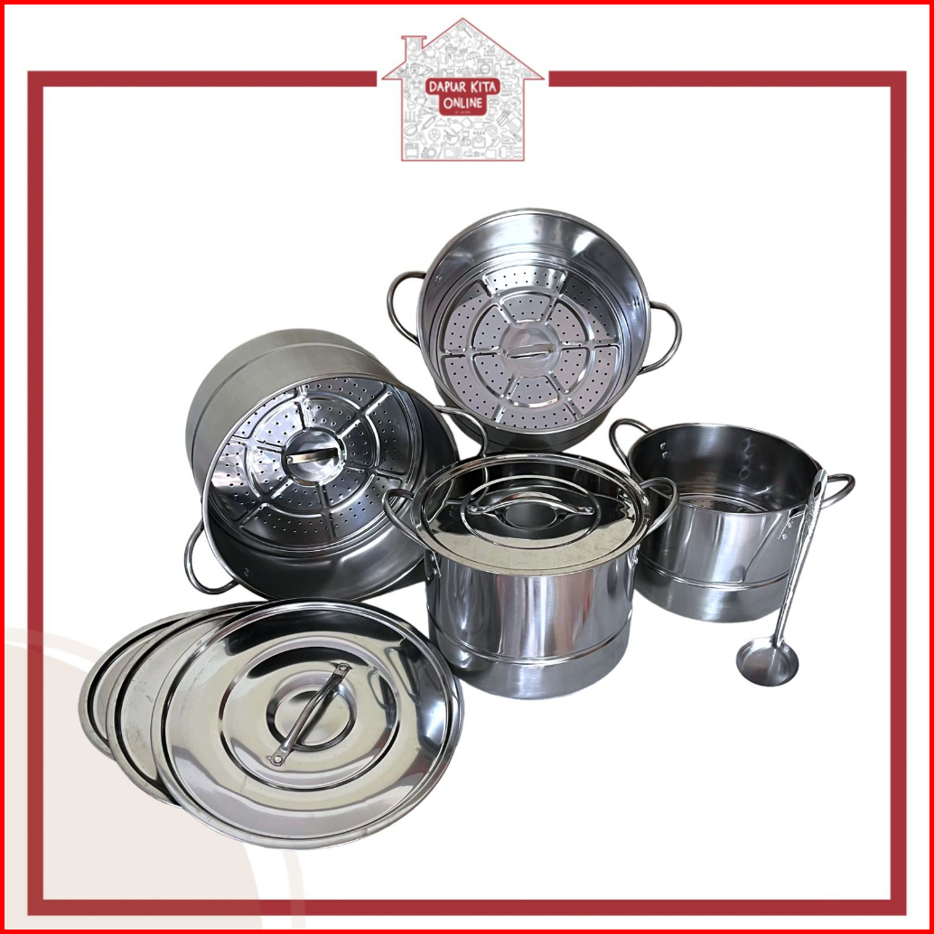 Panci Kukus Dandang 1 Set 4 Pcs Bmw Sth-03 Stock Pot Steamer Stainless Steel Free Centong