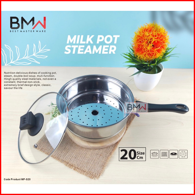 Premium Milk Pot Steamer Panci Susu 20cm Steamer Kukus Tutup Kaca