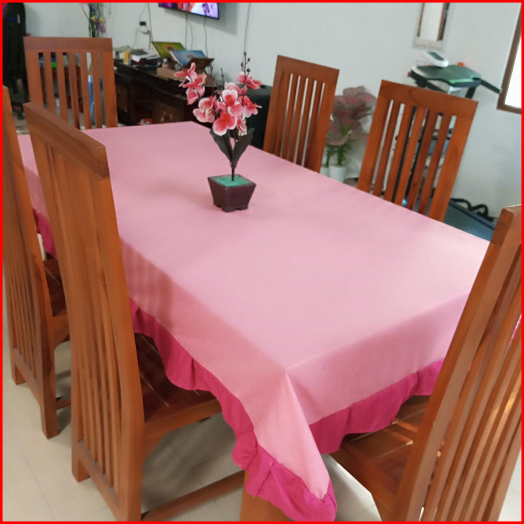 Taplak Meja Rumbai Kain Polos Embos Ukuran 140x220 Cm Dekorasi Rumah Elegant