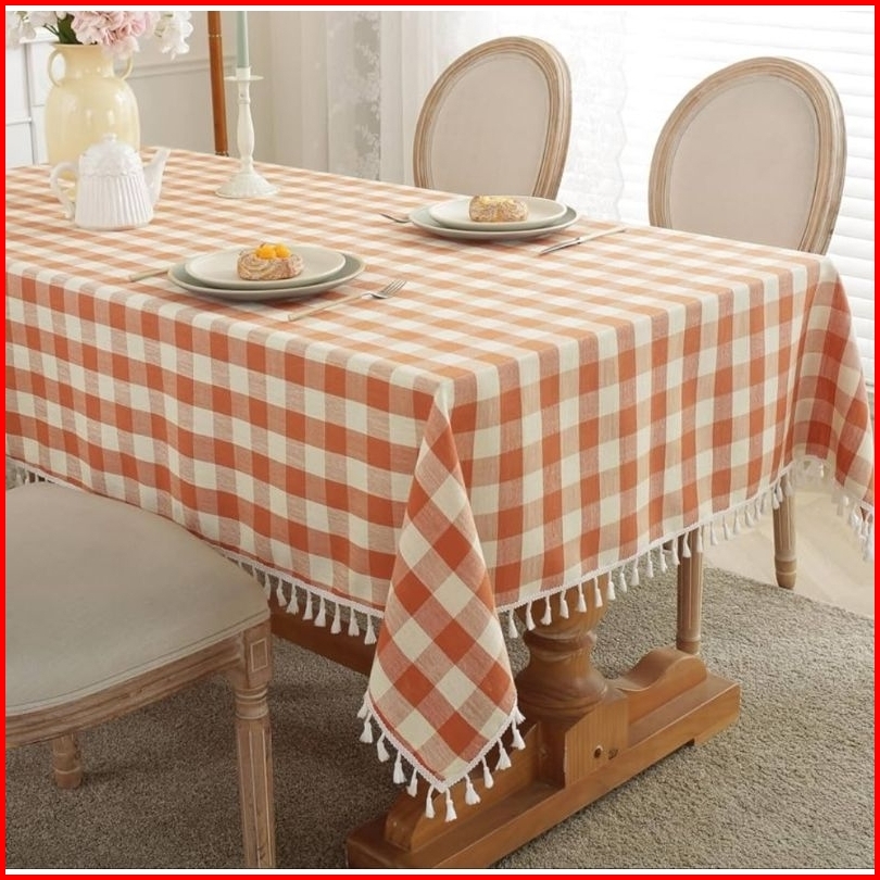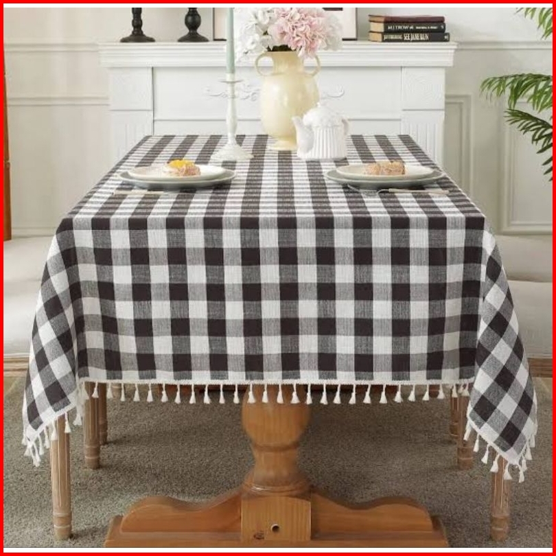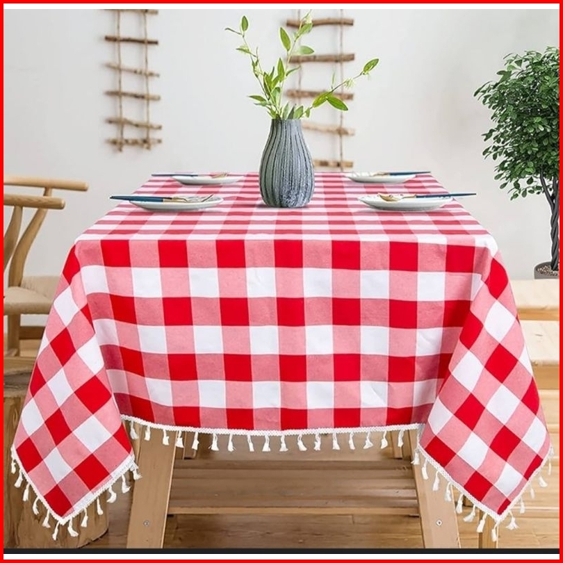 Taplak Meja Renda Rumbai Motif Kotak Besar