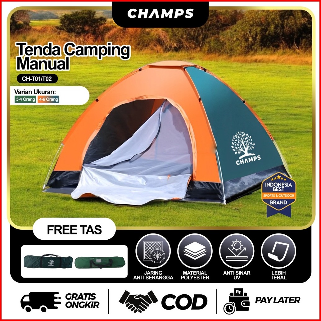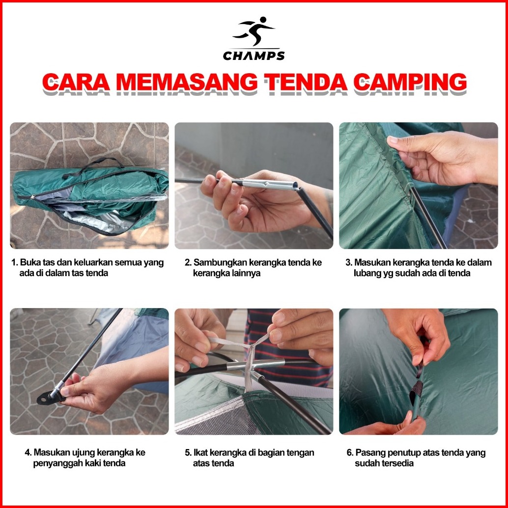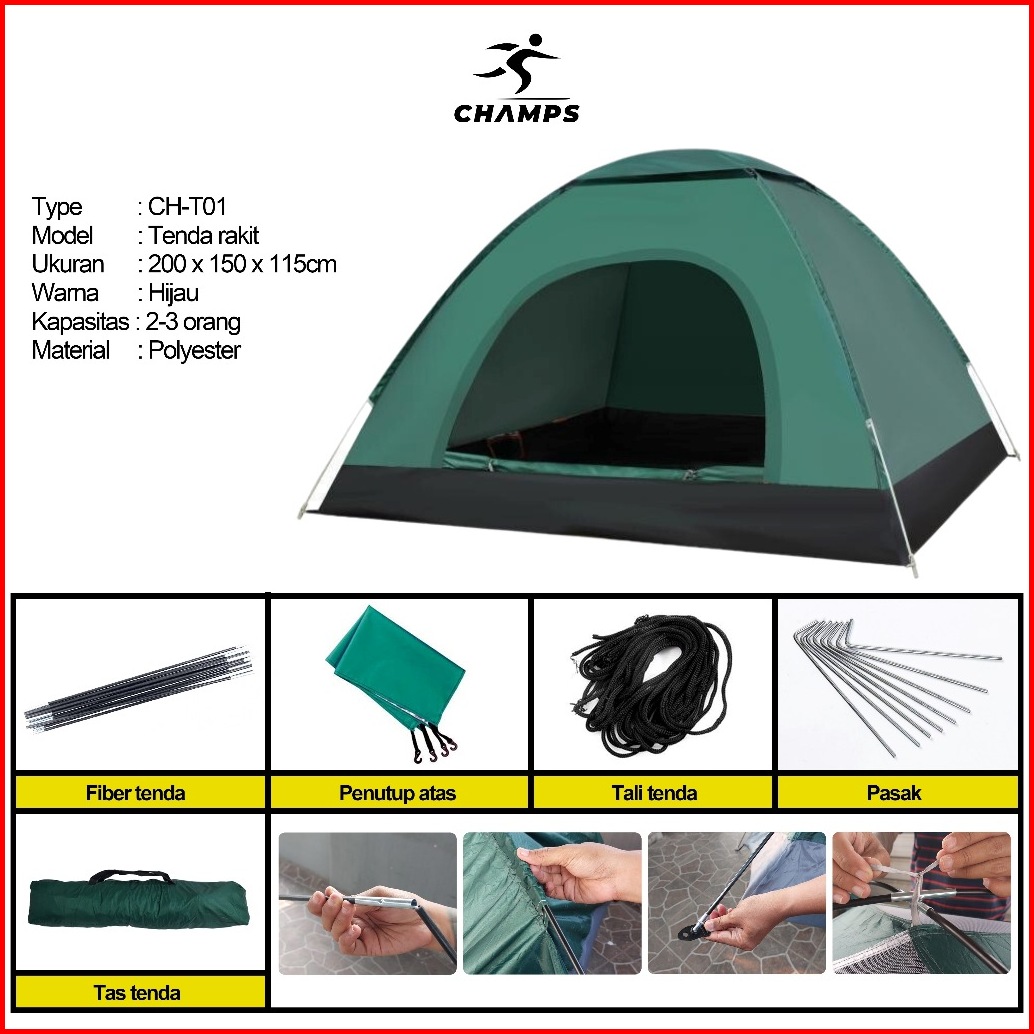 Champs Tenda Camping Rakit Tiang Portable Tenda Gunung Camo Model Damo Outdoor Indoor Murah Premium Ch-t01 Ch-t02
